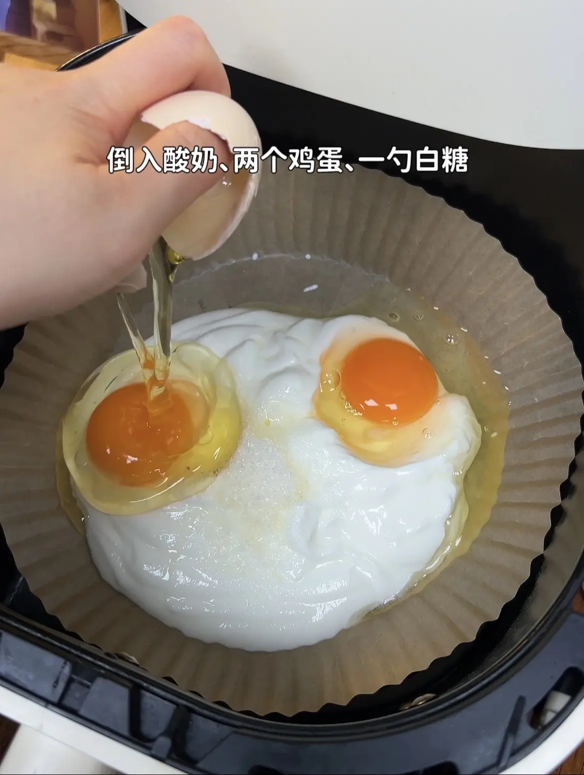 假如你有空气炸锅,家里的酸奶不要扔了,加入两颗鸡蛋,就可以做酸甜口的假...