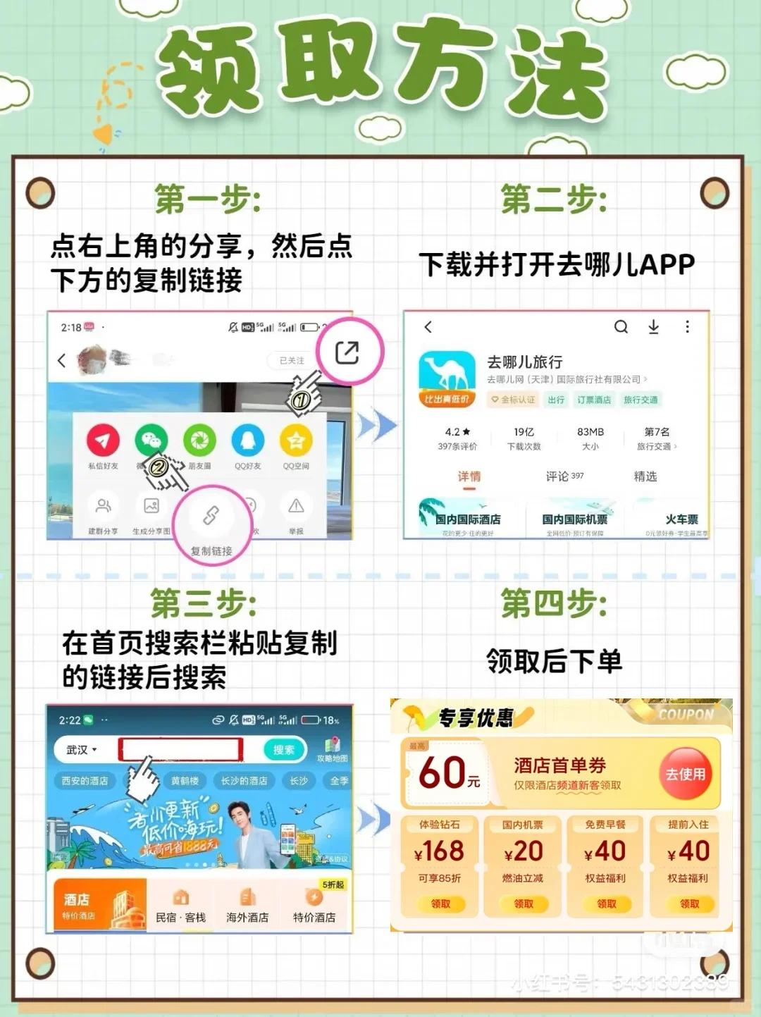 4. 领取酒店优惠券并使用(详情见最后一张图)