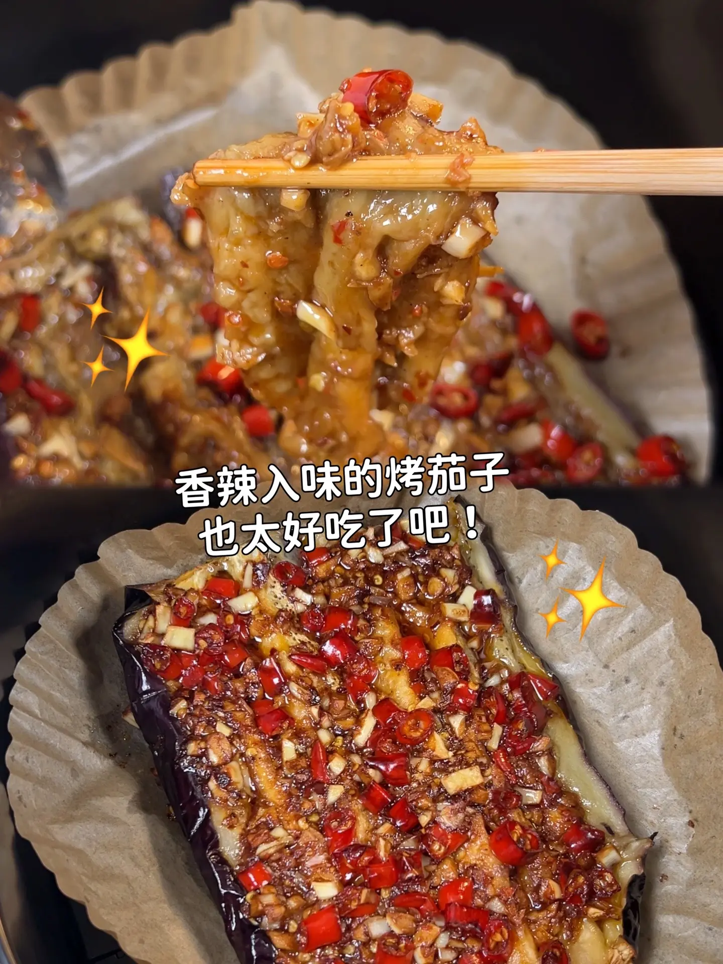 假如你有空气炸锅,想吃烧烤都可以自己做,这个蒜香烤茄子也太好吃啦吧~妈呀太香了