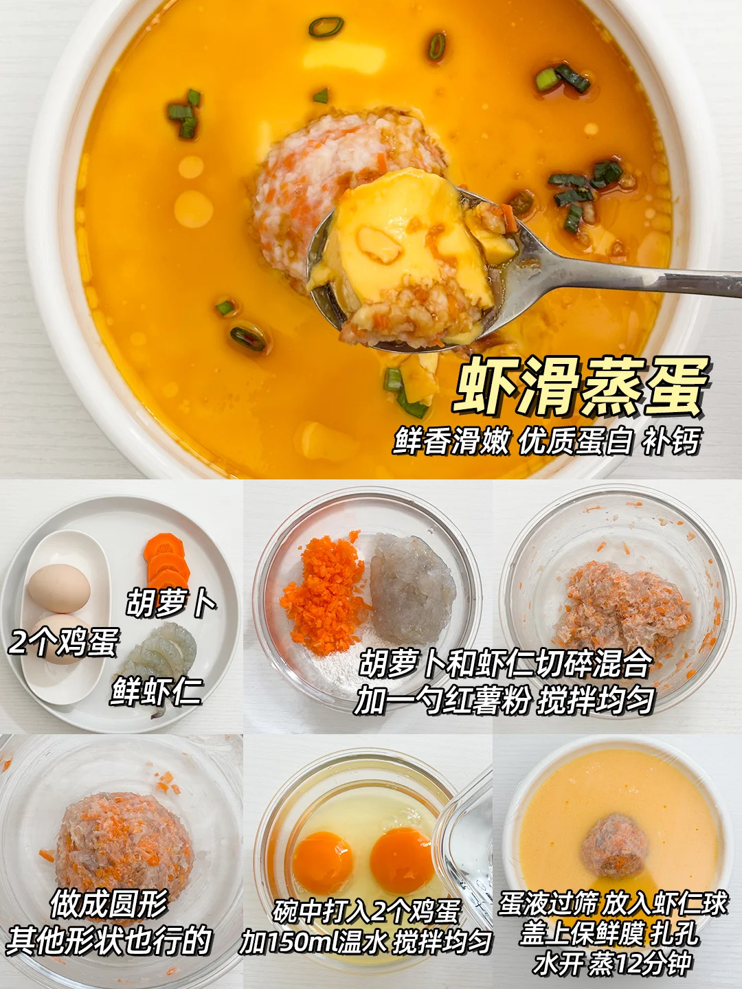3️⃣虾滑蒸蛋(优质蛋白 补钙)