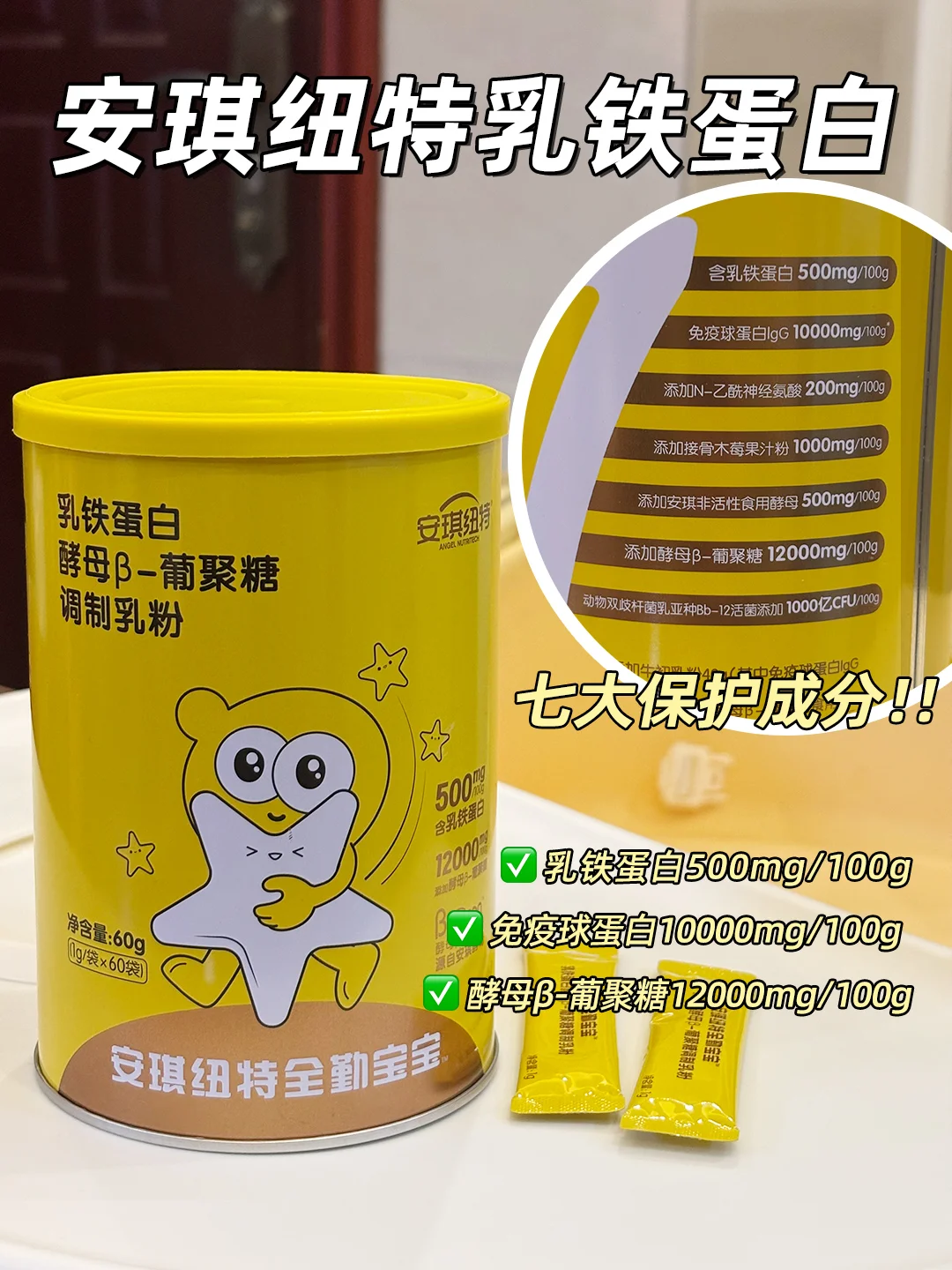 综合这四点,最后选择了安琪纽特乳铁蛋白,它含有7种提高守护力的成分,对于家里有小孩在上学的来说是妥妥的全勤宝宝金钟罩,而且含量也足。
