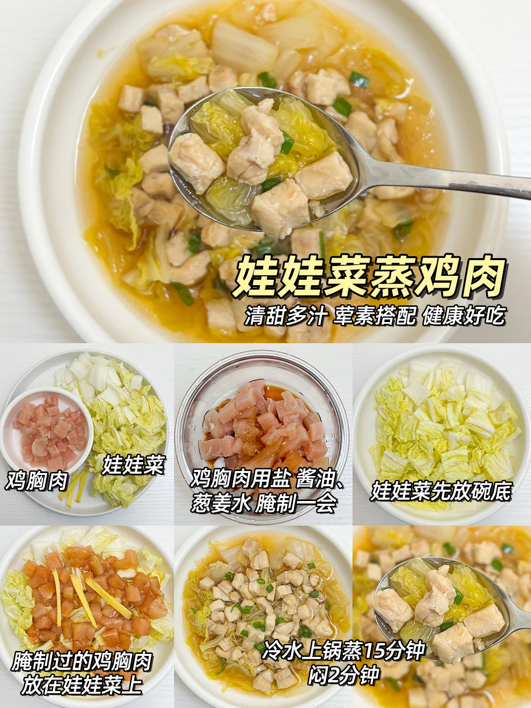 6️⃣娃娃菜蒸鸡肉(清甜多汁 健康好吃)