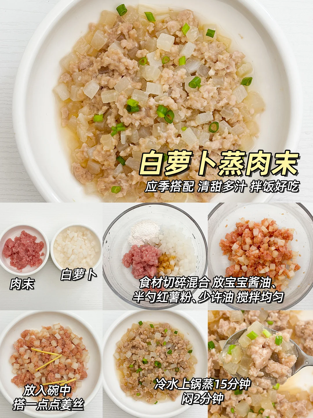 2️⃣白萝卜蒸肉末(应季搭配 清甜下饭 一定要试试)