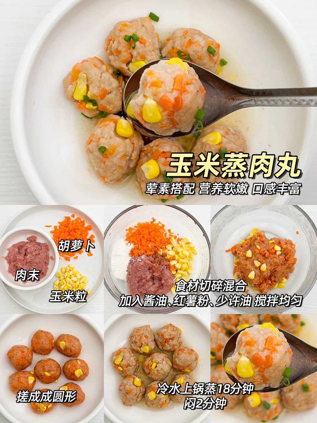 4️⃣玉米蒸肉丸(荤素搭配 营养软嫩)