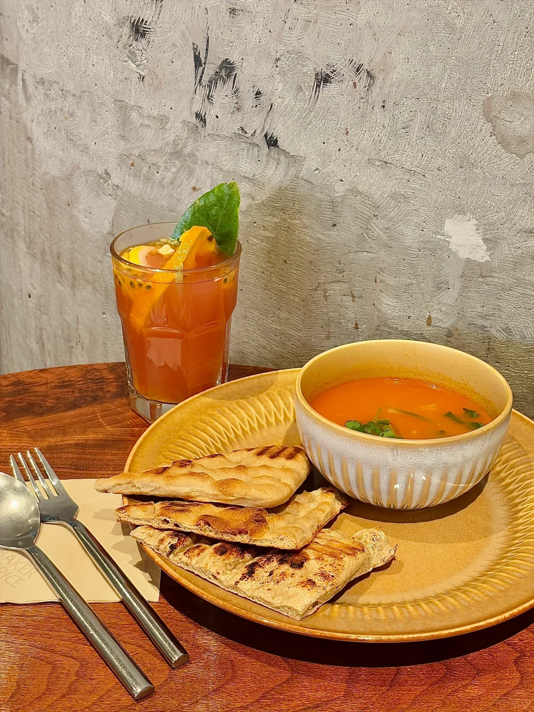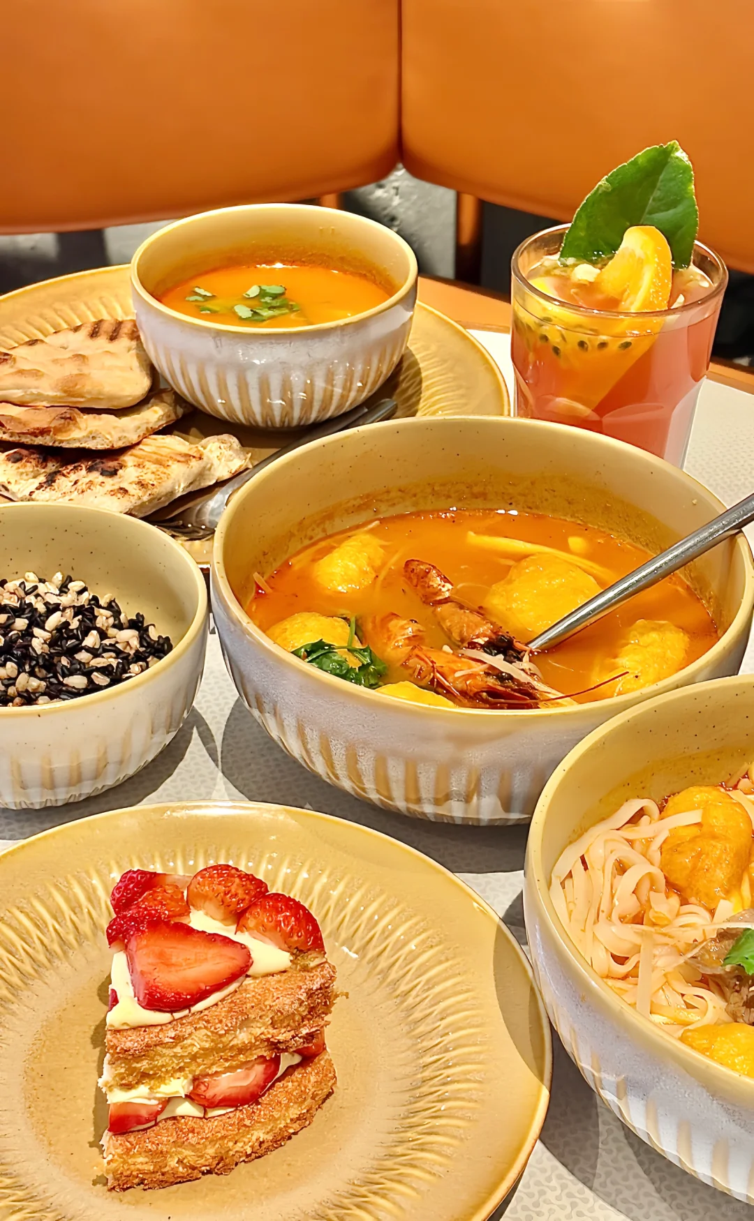 最近贵州酸汤食物真的好火呀[偷笑R] 逛街的时候发现baker&spice也出了贵州毛辣果酸汤系列的食物耶[萌萌哒R] 跟朋友直接一次把新品系列点了个遍❗️ 冬天吃上一份热腾腾的酸汤食物真的很幸福且开胃 两份主食分别是安格斯牛肉红酸汤河粉🍜和香煎虎虾红酸汤杂粮饭🍚 底汤的味型是一样的 河粉吸满汤汁 每一口都是酸酸甜甜 而且份量超足❗️ 有一种河粉在里面自己我繁衍 吃不完一点 哈哈😄 杂粮饭这一款更适合健身人吃❗️ 我是直接把饭盖进了汤里 虽然是汤泡饭 但感觉浸满汤汁的杂粮饭仍然保留了颗粒感 不过个人更喜欢河粉这一款 嘿嘿[害羞R][害羞R] 以及❗️小吃毛辣果红酸汤配手工馕饼一定要趁热吃❗️ 还有新推出的三款木姜子系列的饮品🥤 跟朋友分别喝了木姜子百香果蜂蜜茶和粉红胡椒木姜子可可放松茶 必须要说 我真的很喜欢可可这一款 造型就很可爱 有一种重回圣诞感 而且冬天怎么能没有一杯热可可[喝奶茶R] 加上香料味 是我会回购的一款饮品 ~~~~~~~~ 💛拍摄:iPhone16 💛滤镜: 🍊iPhone:原相机 鲜明度+70(增加会看起来更清透) 阴影+15(提亮最暗处) 对比度+5 亮度+5 色温+5 锐化+50 🍊安卓:🌟图 光感+80(增加会看起来更清透) 阴影+20(提亮最暗处) 对比度+5 亮度+5 色温+5 锐化+60 参数不是固定的 根据实际情况调整 大家注意数据高一点的参数即可 💛质量修复: 针对锐化过后建议用一次质量修复 质量修复后图片会比较清晰柔和 ~~~~~~~~ ❤️主页会持续更新构图和滤镜❗️