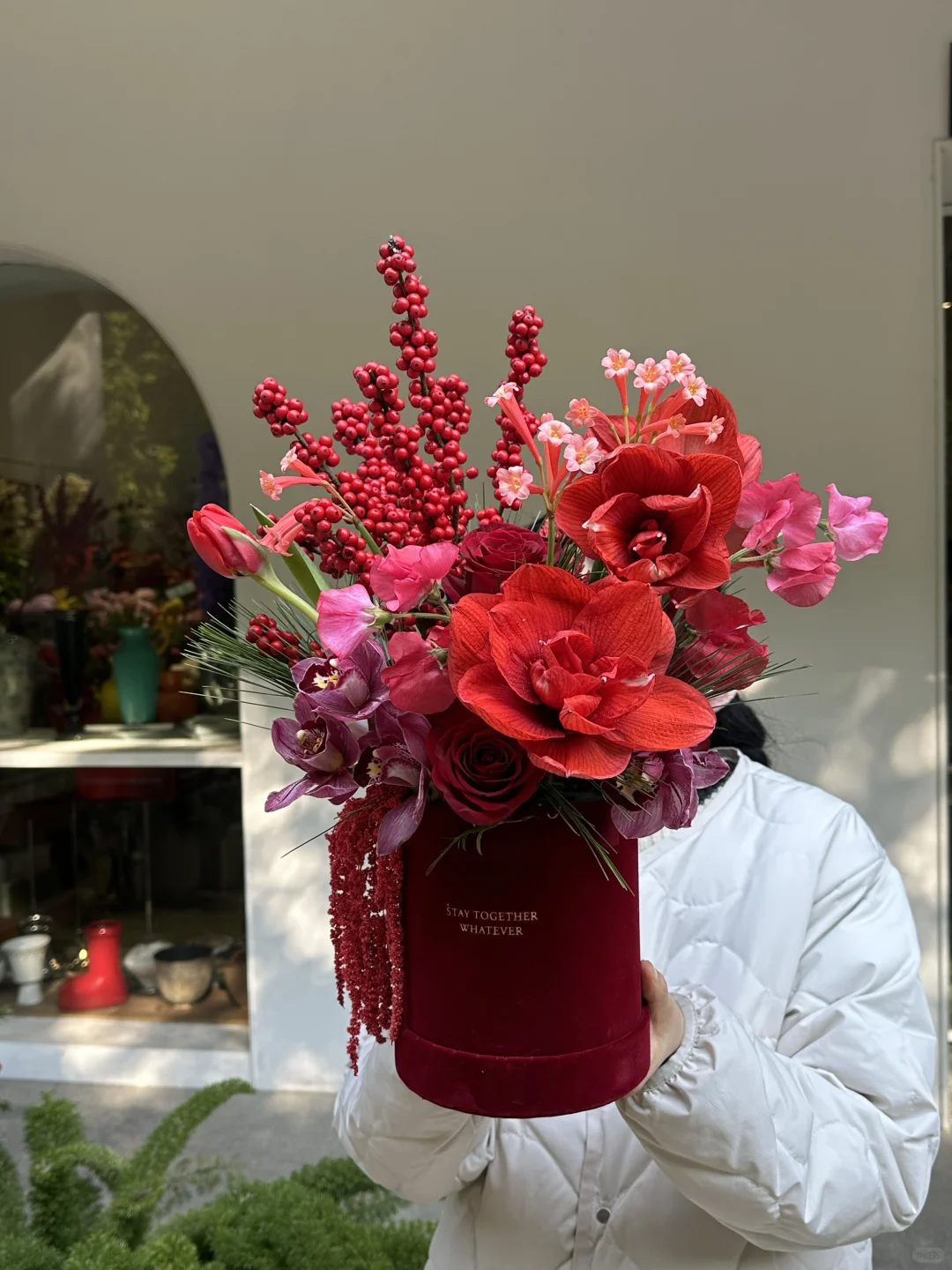 点缀生活的鲜花 杭州花店 增添点年味儿 年宵花 鲜花分享 红色系抱抱桶