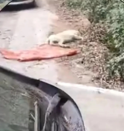 可恶之人必有可恨之处!1月14日广东,一男子骑着摩托车,头戴鸭舌帽,竟然进一村庄去偷狗,不料事情败露,骑上摩托车落荒而逃,却被村民开车狂追,最后被小汽车顶在路边无法动弹,而不远处被偷的狗狗躺在路边,看样子已经不行了。