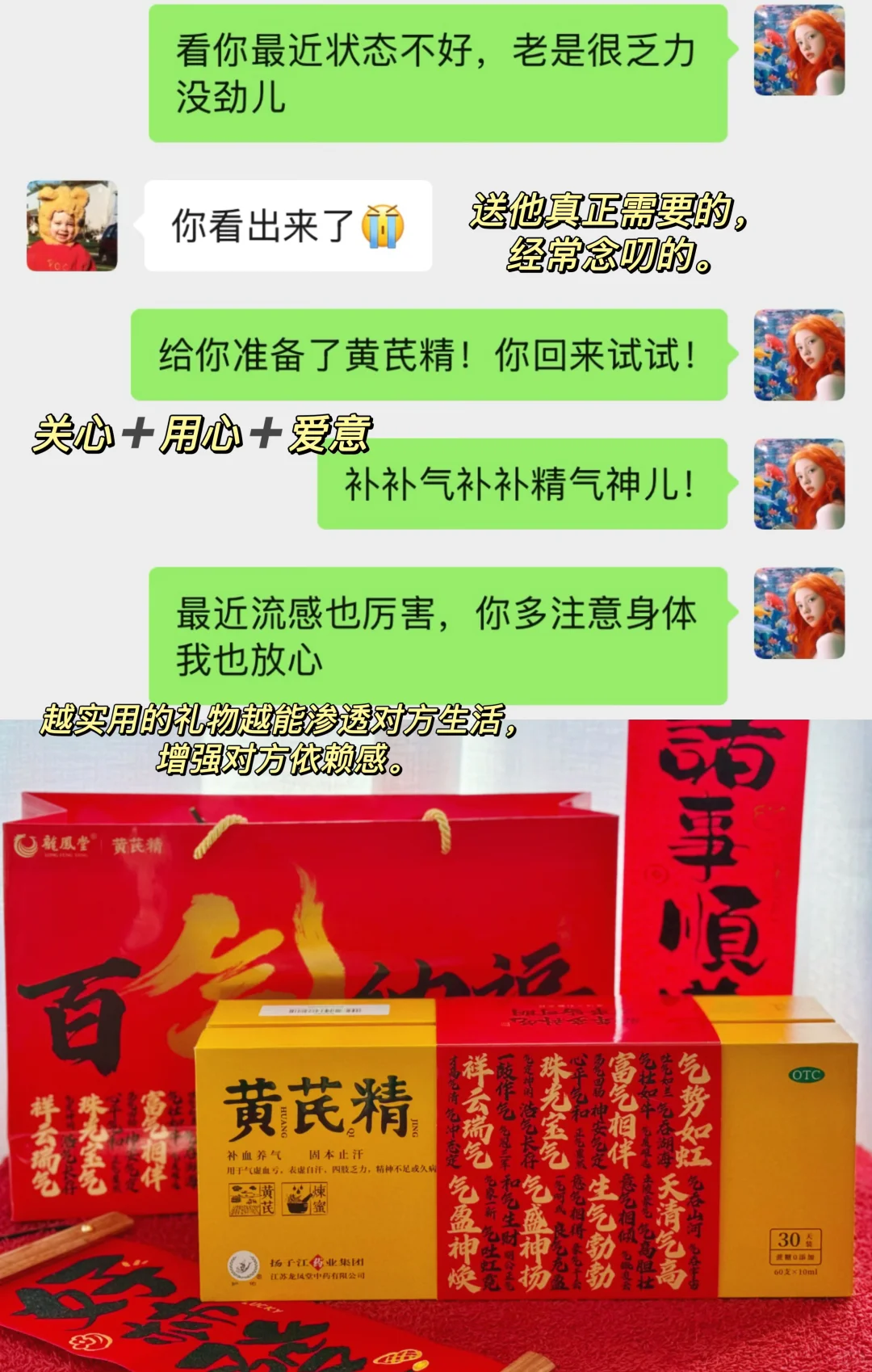 拿我们来说,老李本身自己创业就比较辛苦,最近又经常加班,整个人都有种说不出的累和乏力,状态经常不好,再加上最近流感比较重,我决定给他内调下,送他补气补精神的龙凤堂黄芪精。