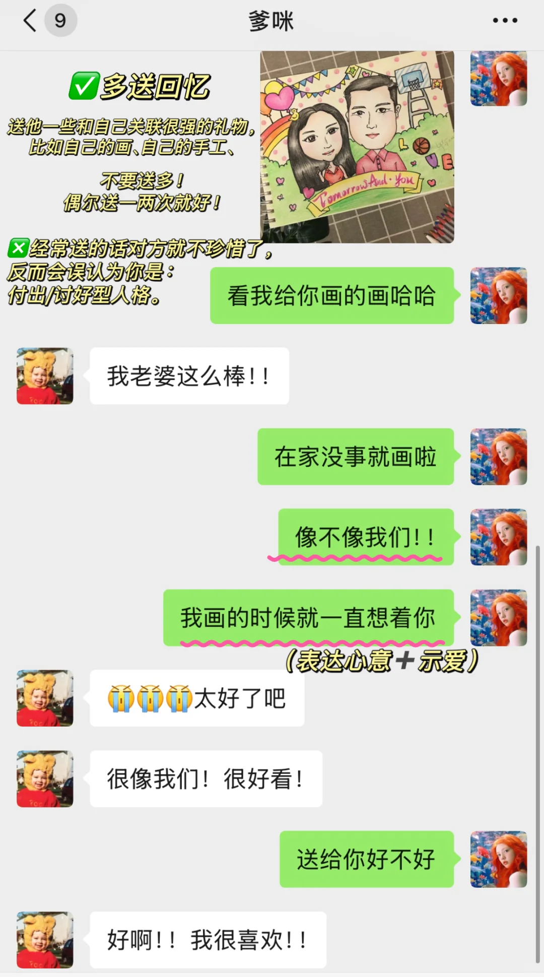这个时期,要提升对他的关注,增加情绪价值,让他感受到自己对他的用心。要送就送他平时真正需要的和经常念叨的,越实用越好。