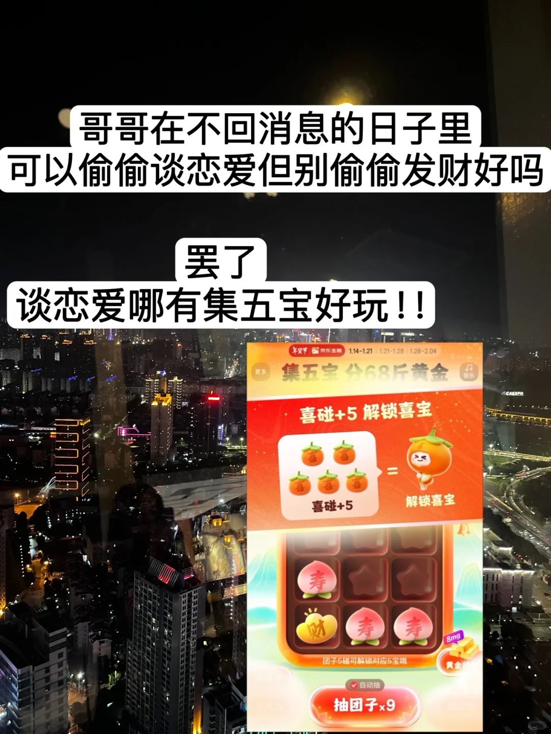 偷偷背梗 做有梗女人 互联网真的能学到东西哈哈哈 最近还刷到京东金融年货节活动了 集五宝分68斤实物黄金 还能送好友黄金福袋 我现在每天都沉浸在换团子中无法自拔 简直不要太爽~
