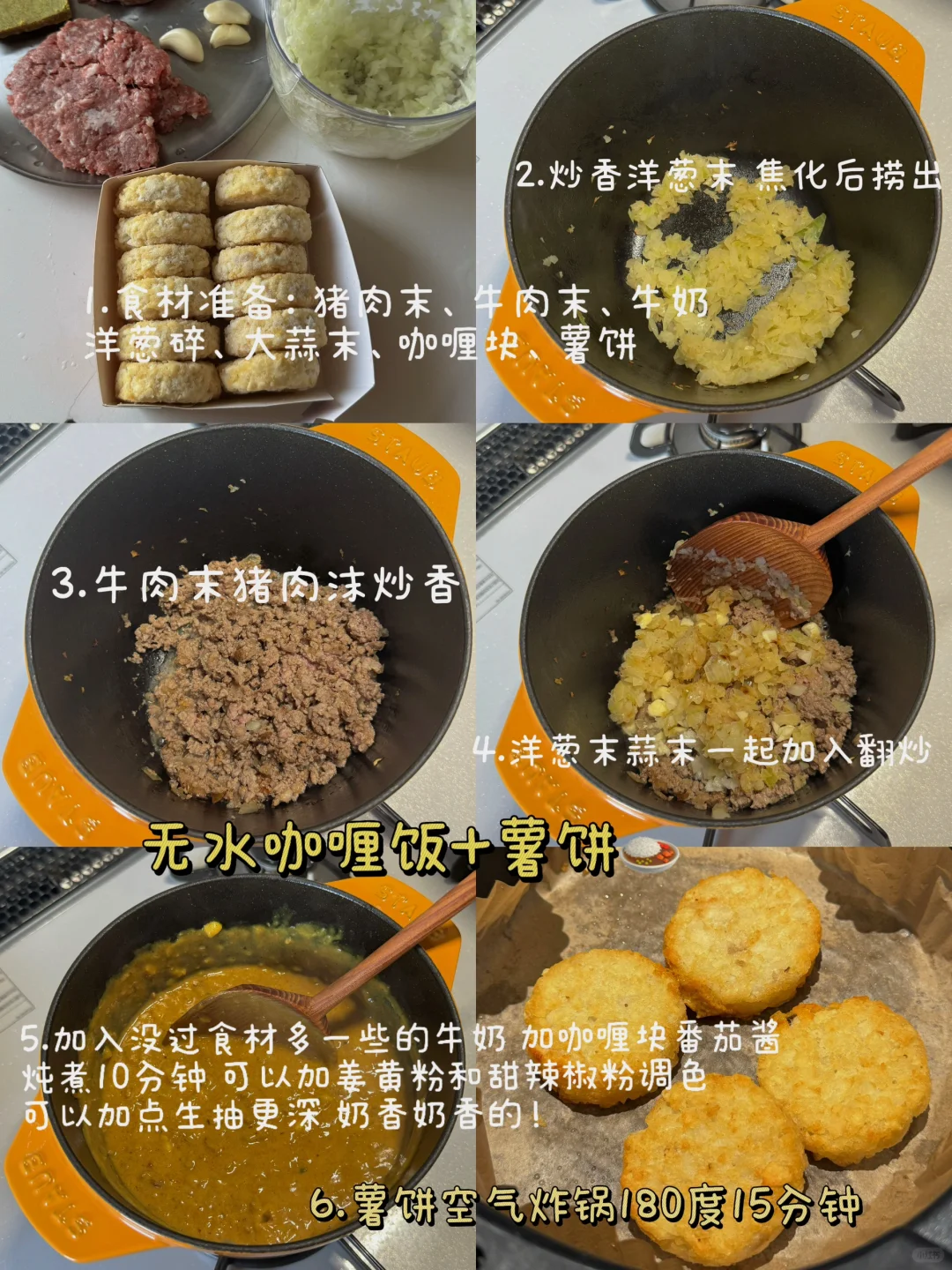 无水咖喱饭+美国冷冻薯饼🍛做法附图