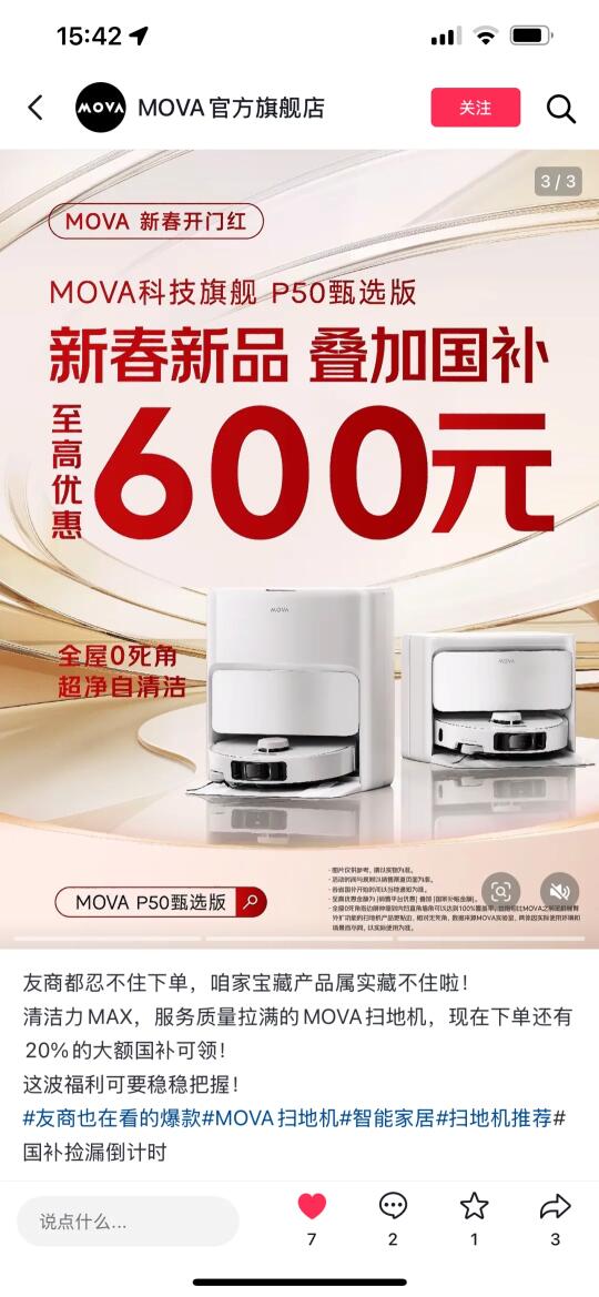 原本计划春节之后,出去逛街溜娃,谁能料到,竟让我撞见了石头官方账号下单 MOVA 扫地机这一劲爆消息。 不得不说,2025 年开年最大的瓜,非石头和 MOVA 莫属。这剧情,像不像学霸学长悄悄 “爱慕” 上实力超强的新生?真的太有意思了,差点把我笑岔气😂