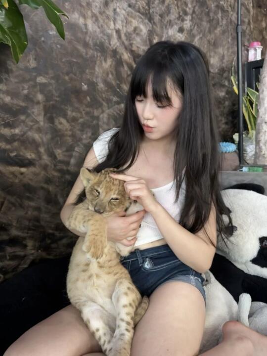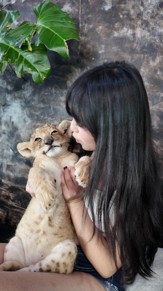 价格是1000🐷可以和小狮子互动5分钟,这家店里有三只狮子,一只大的两只幼崽,大的要便宜些,是500🐷,我们觉得小狮子可以抱抱就选择了小狮子,店里面环境也不错,排队待着很舒服。