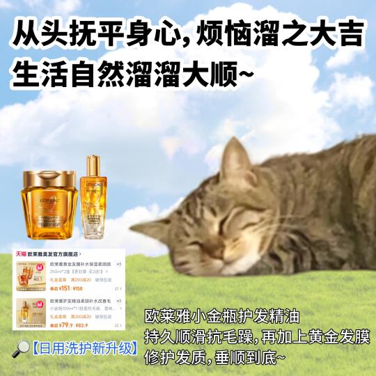 如果生活把你的门关上了,那你就再打开,这就是门,门就是这样用的!如果生活给你泼了盆水,那你就洗个头,这就是水,水就是这样用的!顺便用下欧莱雅玻尿酸洗护套装,发根蓬松又去油清爽,让好运从头开始~以及黄金发膜修护干枯发质,帮你垂顺到底!最后可以配合欧莱雅小金瓶护发精油,持久顺滑抗毛躁~