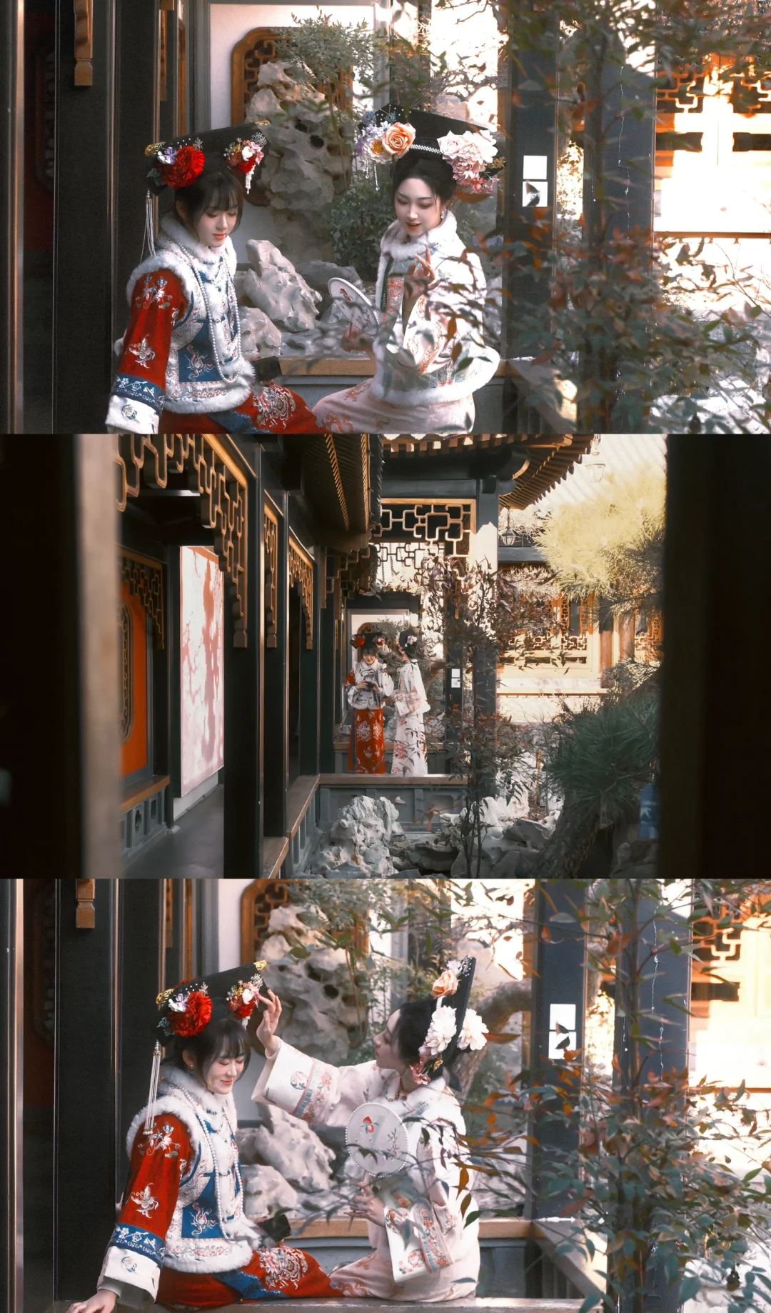 [氛围感R]旗装是在王府世纪里找的一整栋都是做格格妆造的,整体比较流水线风格,到现场直接挑店选衣服。我们选的这家服务很好,梳头和服饰都很细致,我说想要这套但不想穿斗篷,小哥哥特意去找裁缝给我加了风毛[赞R]摄影没有找他家,我们自己随便拍的。另外真的不要预约,预约了也很难保留,早点去才是正经