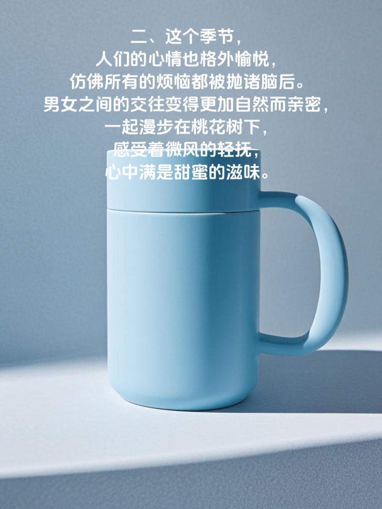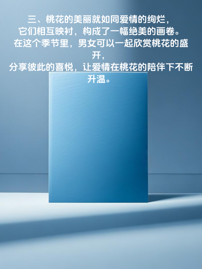 一、桃花盛开的季节,仿佛整个世界都被染上了粉色的浪漫。在这个美好的时节,男女交往也迎来了最甜蜜的时刻。空气中弥漫着淡淡的花香,仿佛是爱情的气息在悄然蔓延。 二、这个季节,人们的心情也格外愉悦,仿佛所有的烦恼都被抛诸脑后。男女之间的交往变得更加自然而亲密,一起漫步在桃花树下,感受着微风的轻抚,心中满是甜蜜的滋味。 三、桃花的美丽就如同爱情的绚烂,它们相互映衬,构成了一幅绝美的画卷。在这个季节里,男女可以一起欣赏桃花的盛开,分享彼此的喜悦,让爱情在桃花的陪伴下不断升温。 四、桃花盛开的季节,是男女交往最甜蜜的季节,让我们一起抓住这个美好的时光,用心去感受爱情的温暖,让爱情在桃花的映衬下绽放出最耀眼的光芒。