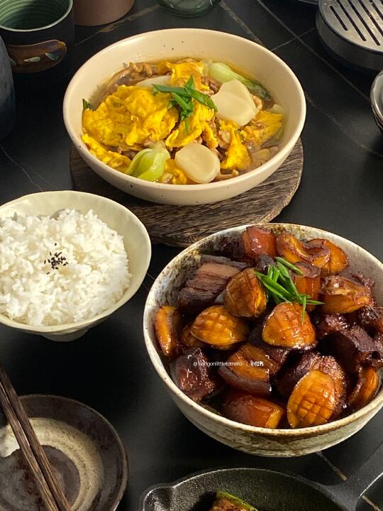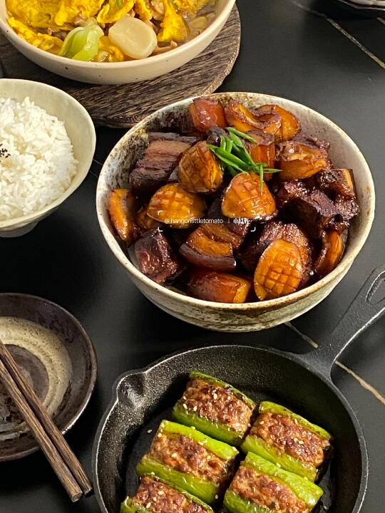 今日菜谱📜红烧肉青椒酿肉年糕肉丝汤🥢