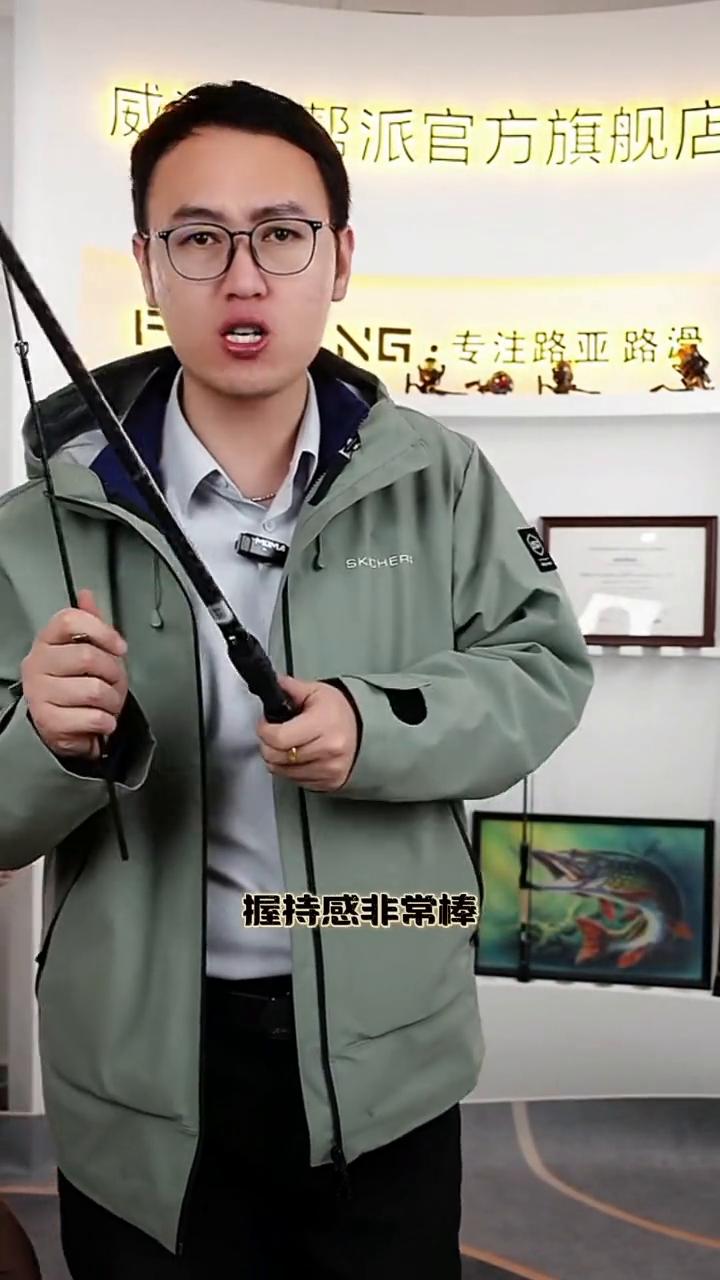 大锥度轻量化感度高重心后置。 碳素的手柄,这块纯碳纤维的,轮座也是碳纤维的,卡帽也是全碳纤维的。整个杆子做的很简单,整个的全部是用高碳的,能看得清。乌黑发亮交叉碳布,细致细腻。螺纹状交叉碳布,一竿到顶,能摸得到的环形碳带。竿子竿尖,竿子的手柄全部做了交叉碳布。 两节的对等插节,1.8米、1.98米、2.1米的尺寸,握持感非常棒。抬竿非常的轻盈,腰身腰力是很足的,能看得清。在抖动的过程中,它的竿子竿尖是有摆动幅度,但是腰力很足。枪柄的顶环内径是3.8米,直柄是4.2米的顶环内径。
