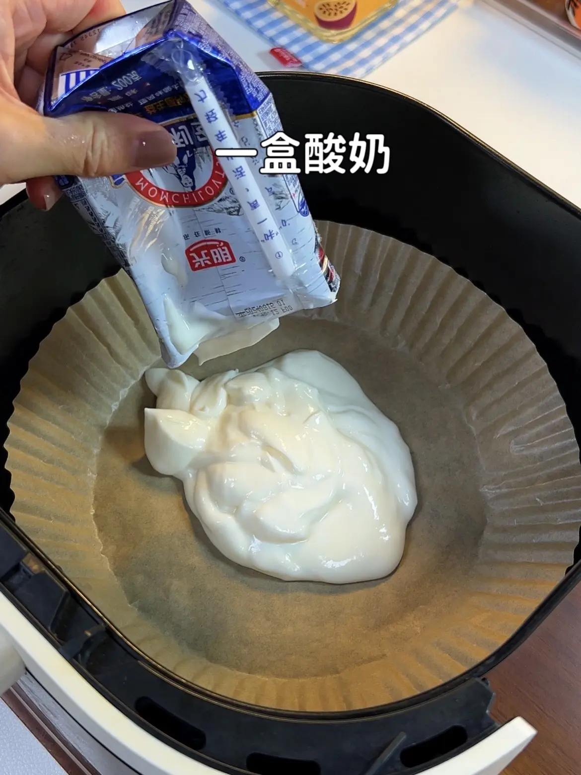 假如你有空气炸锅,家里的酸奶不要扔了,加入两颗鸡蛋,就可以做酸甜口的假...
