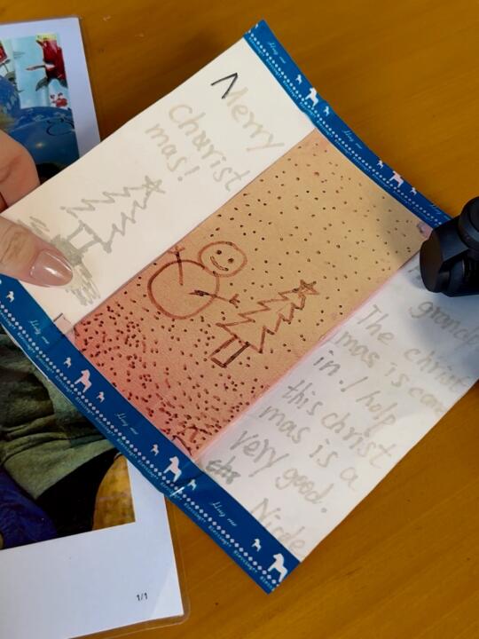 p13-14(爷爷不怎么扔东西 他什么都会留着。在这次翻照片的时候竟然找到了我幼儿园的时候写给爷爷的圣诞贺卡😭现在回过来看 感觉画的蠢蠢的~