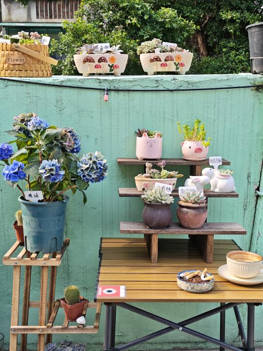 夏日滤镜 老城区的松弛感就在这样的复古小店 天台的阳光很足 肉肉盆栽 绣球花都好漂亮 一整个色彩斑斓的沙发🛋 公交车凳子 露营凳子 傍晚的时间还能看到整个落日余辉 一整杯咖啡 有阳光 植物 真的好出片 也很舒服整个天台 一整个爱住了❤️ 真是一个看书 发呆 工作的好地方(。_。)📖 下次还来😁