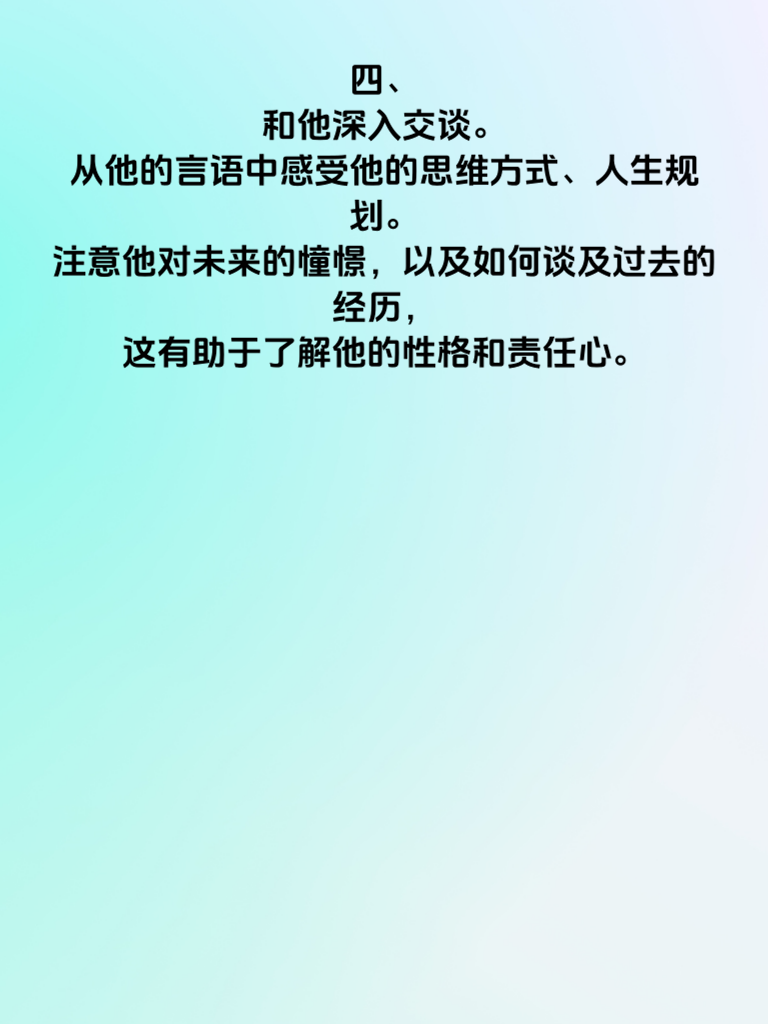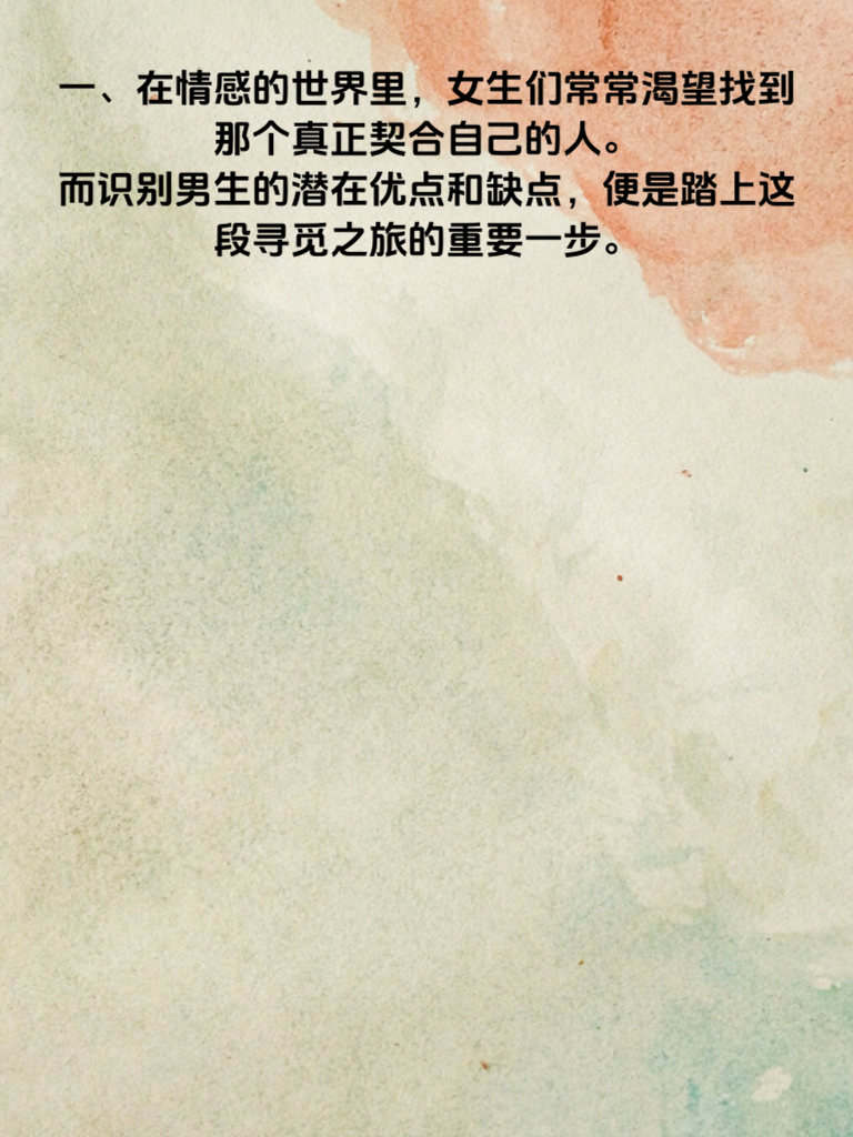 一、在情感的世界里,女生们常常渴望找到那个真正契合自己的人。而识别男生的潜在优点和缺点,便是踏上这段寻觅之旅的重要一步。 二、观察他的细节之处。比如,看他如何对待服务员,是否礼貌且尊重,这能反映出他的教养。他在面对困难时的态度,是积极应对还是消极逃避,从中可洞察他的坚韧程度。 三、留意他的朋友圈。朋友圈往往是一个人生活的缩影。他分享的内容、与朋友的互动方式,能展现他的兴趣爱好、价值观和社交能力。 四、和他深入交谈。从他的言语中感受他的思维方式、人生规划。注意他对未来的憧憬,以及如何谈及过去的经历,这有助于了解他的性格和责任心。 五、看他如何处理冲突。是冷静理智地沟通,还是冲动易怒,这能揭示他的情绪管理能力。 六、观察他对家人的态度。一个善待家人的男生,往往也懂得珍惜身边的人。 七、最后,时间是最好的检验剂。随着相处的深入,他的优点和缺点会更加清晰地呈现出来。用心去感受,你就能识别出那个男生的潜在优缺点,从而更好地把握自己的情感走向。