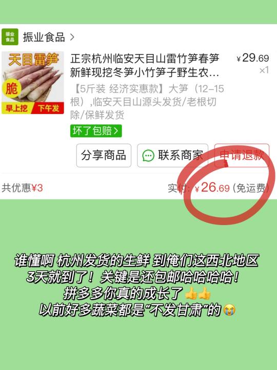 🩵拼多多自己出钱,免除了商家在西部地区的物流中转费,大大降低商家的发货成本!所以我这次买的蔬菜都是包邮哒~最快三天就到货啦,到手蔬菜也超新鲜✌