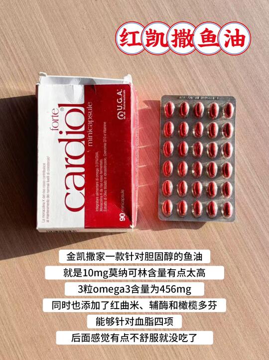 我们家吃过的有红凯撒鱼油和红钻鱼油,做过功课是说omega3能够针对甘油三酯,再搭配上像红曲米这类针对低密度的成分,能够适应大部分的血脂问题