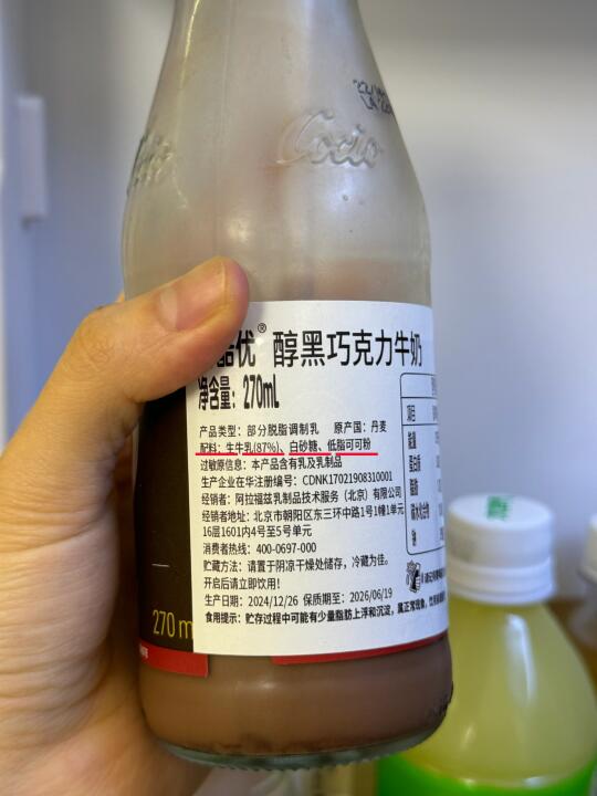 巧克力味巨浓郁~ 配料表出乎意料的干净, 口感像整块巧克力融化在里面一样丝滑细腻 低糖版本,是那种很惊艳的好喝~ 谁懂啊🥹!!真的好久没喝到这么好喝的巧克力牛奶了