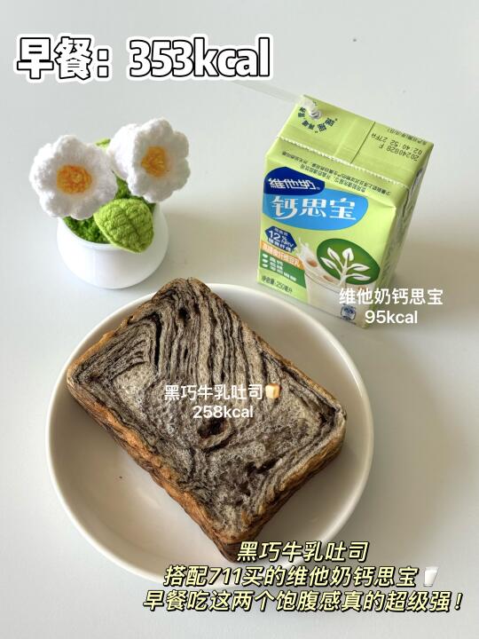 [打卡R]早餐:维他奶钙思宝+黑巧牛乳吐司(353kcal🔥)