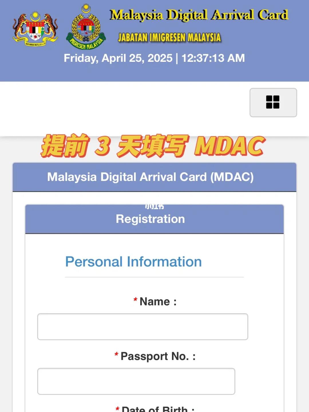提前 3 天在网上填写马来西亚电子入境卡(MDAC)