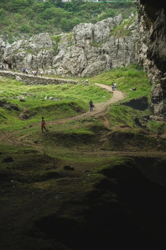 和朋友们一起去了大圣之眼-牛倒岩-天印山,这个路线一开始是非常垂直的下“悬岩”,需要带好手套攀岩下去,我们去的时候因为前面下过雨,就更滑了,非常滑,同行有三个人都不同程度受伤了,需要用绳索,怎么下去的要怎么上来!对体力要求大,还好我们去的时候不热,不热真的很难爬,十岁以下的小朋友也不要去,除非家长能背着攀岩🧗,大圣之眼结束后就徒步去牛倒岩,路途中遇到野生桑葚很甜,我们狂吃(问了后才知道是向导提前给了主人家钱了)牛倒岩到天印山一路上都非常美,风景类似新疆,不过路上全是新鲜的羊屎,牛屎,新鲜牛屎,对于有洁癖的朋友会很折磨,但是景色很绝,距离比较长,要走很久,天印山也美,因为前面的行程体力消耗很大,给天印山爬行难度加大,路途中需要带两瓶水,一瓶功能饮料,还要带好牛肉干肉面包补给,景色很美,路途难度不小,大家量力而行!
