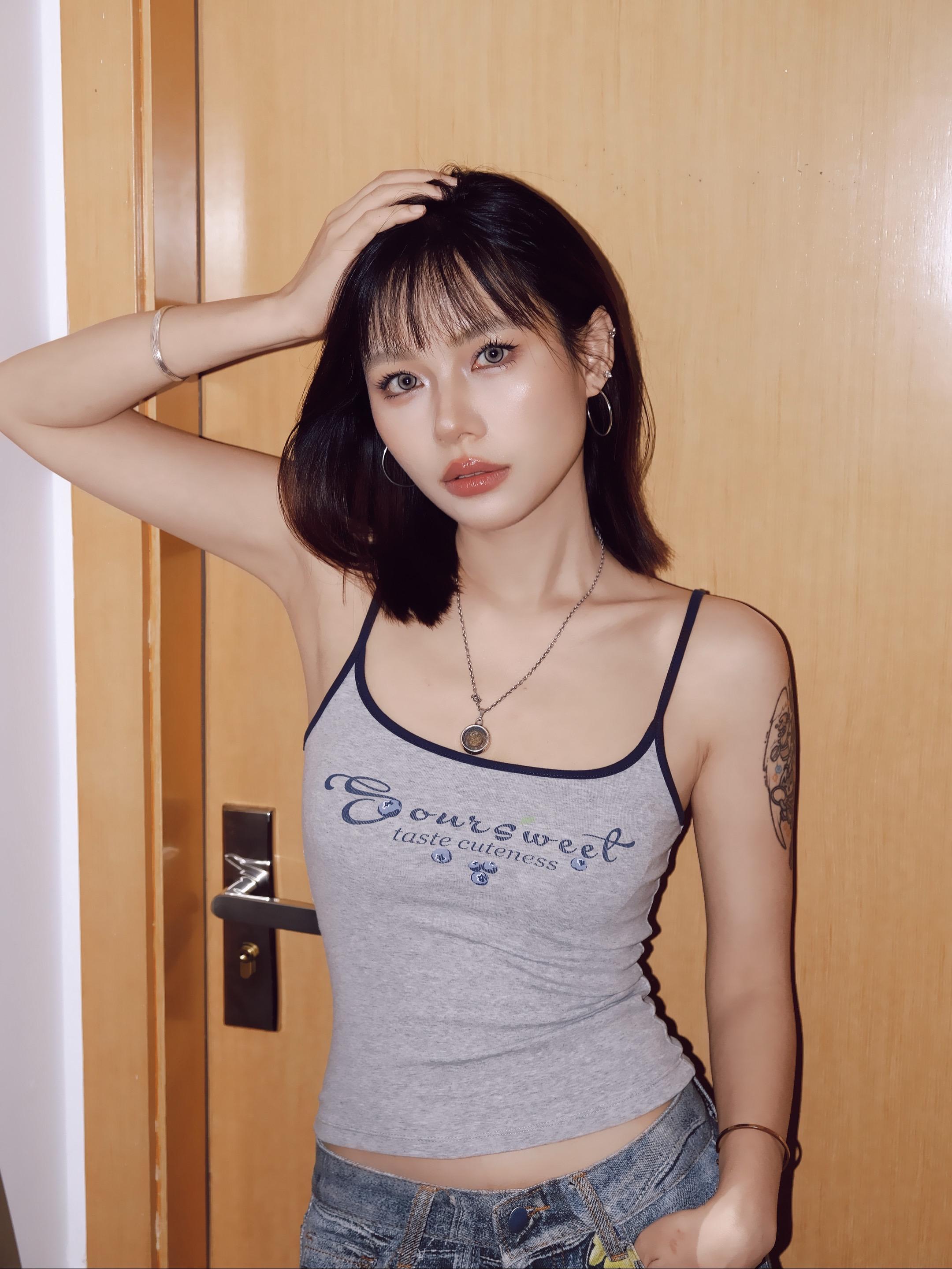 夏日清新穿搭,条纹背心+高腰短裤,轻松自在,元气满满!🌞👗💃