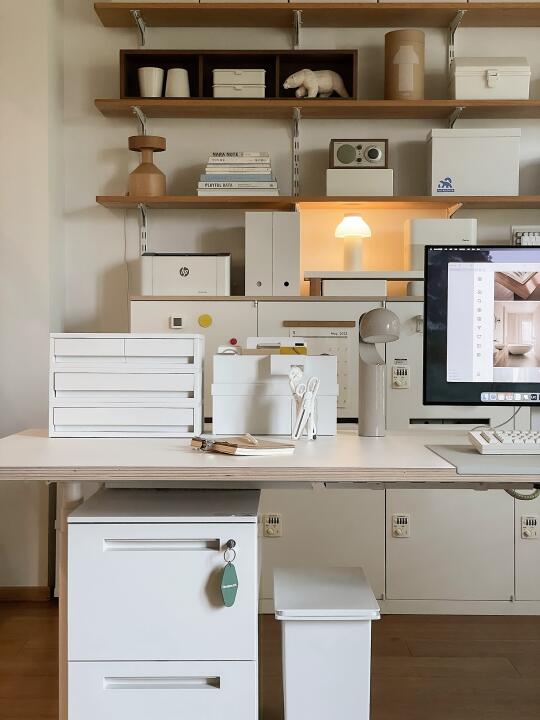 白色+原木是最爱搭配~ 有收纳有氛围, 是我呆不腻的书房!