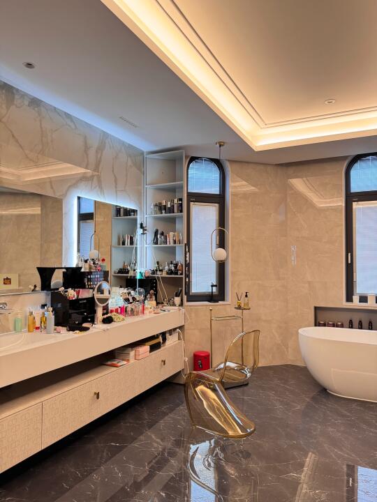有专属的衣帽间 干干净净舒服的卧室 有大浴缸大镜子的卫生间 一家四口 一双儿女