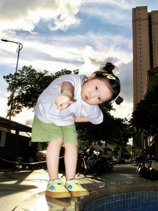 我冬天拿来捂热的小太阳在这个夏天更温暖了 她说她好喜欢夏天哦! 最近悄咪咪长高了很多 P9说她要召唤奥特曼来帮她擦pp了 哈哈哈我帮她配好天空的图 有空p上奥特曼下来 -