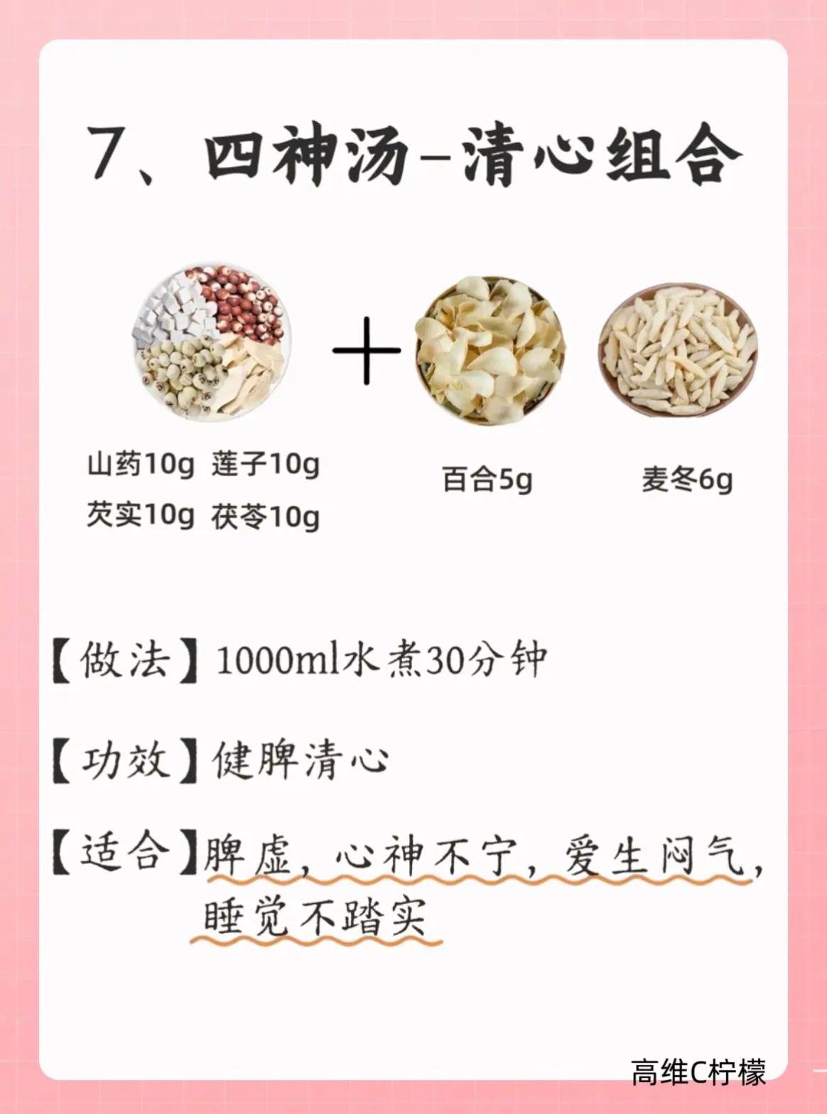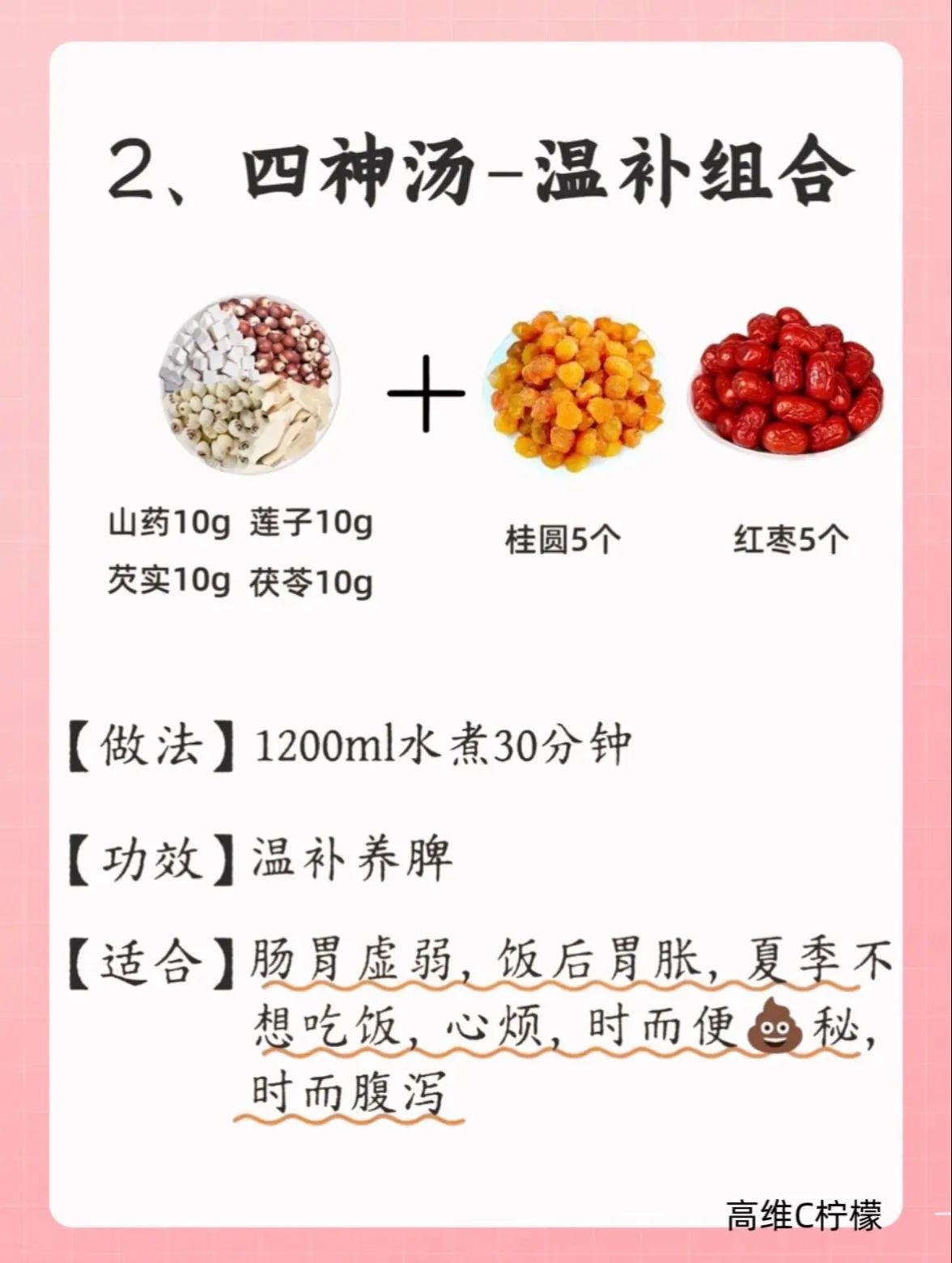 不同体质四神汤搭配,全家可喝。不同体质四神汤搭配,全家可喝,养脾胃❗…🌷四神汤是中y经典食疗方,由药食同源的茯苓、山药、莲子和芡实组成。被誉为“健脾祛湿di一方”性质平和,男女老少皆宜,既能调里脾胃虚弱,又能画解现代人常见的“湿胖”体质。民间甚至有“四神汤一煮,脾胃湿气无”的说法。