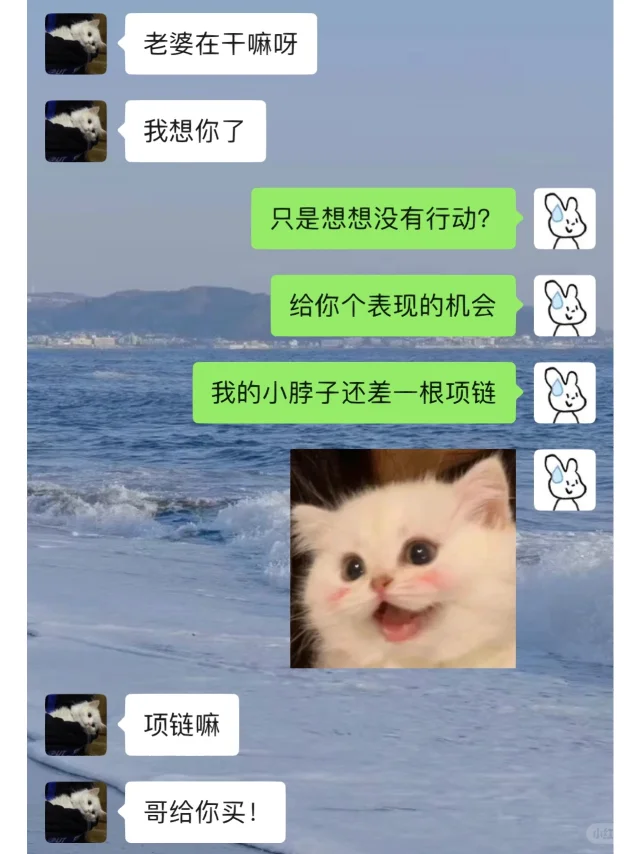 偶尔多一点有趣的回复 给不见面的日子增加一点感情 —— 不得不说男朋友眼光真不错 项链真的好看 闪闪的