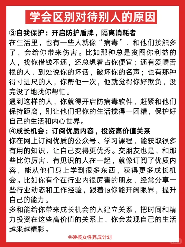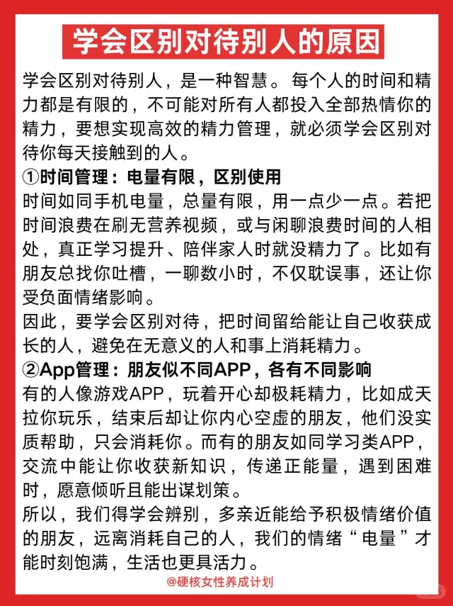 对所有人一视同仁等于慢性消耗,区别待人不是冷漠而是顶级智慧,社交不是妥协而是精准匹配。 2025顶级社交观,把身边人分进不同包厢,成年人的社交潜规则:你的时间要明码标价,你的真心要分等级,你的善良要带锋芒。