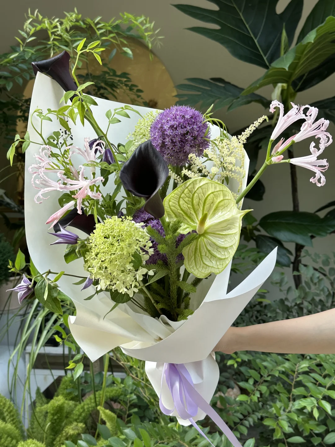 葱花、迷醉掌、宝塔绣球、黑海芋、落新妇、荷兰石蒜、铁线莲、九星叶~