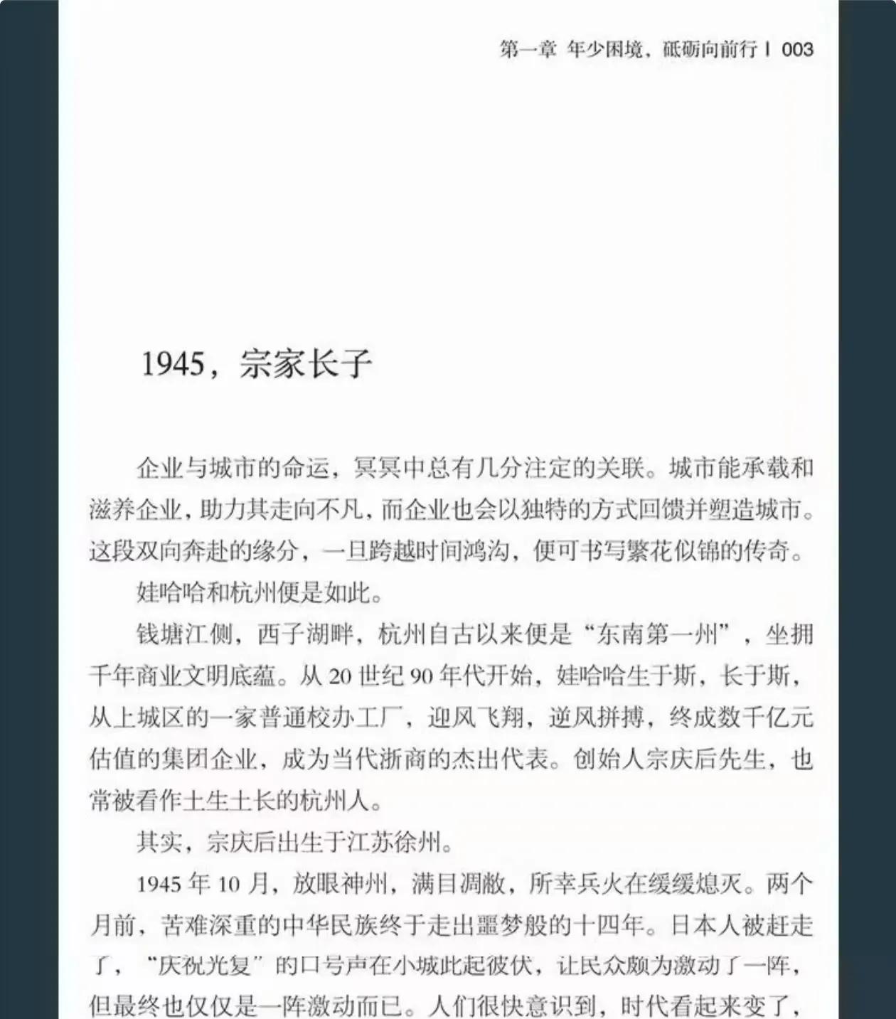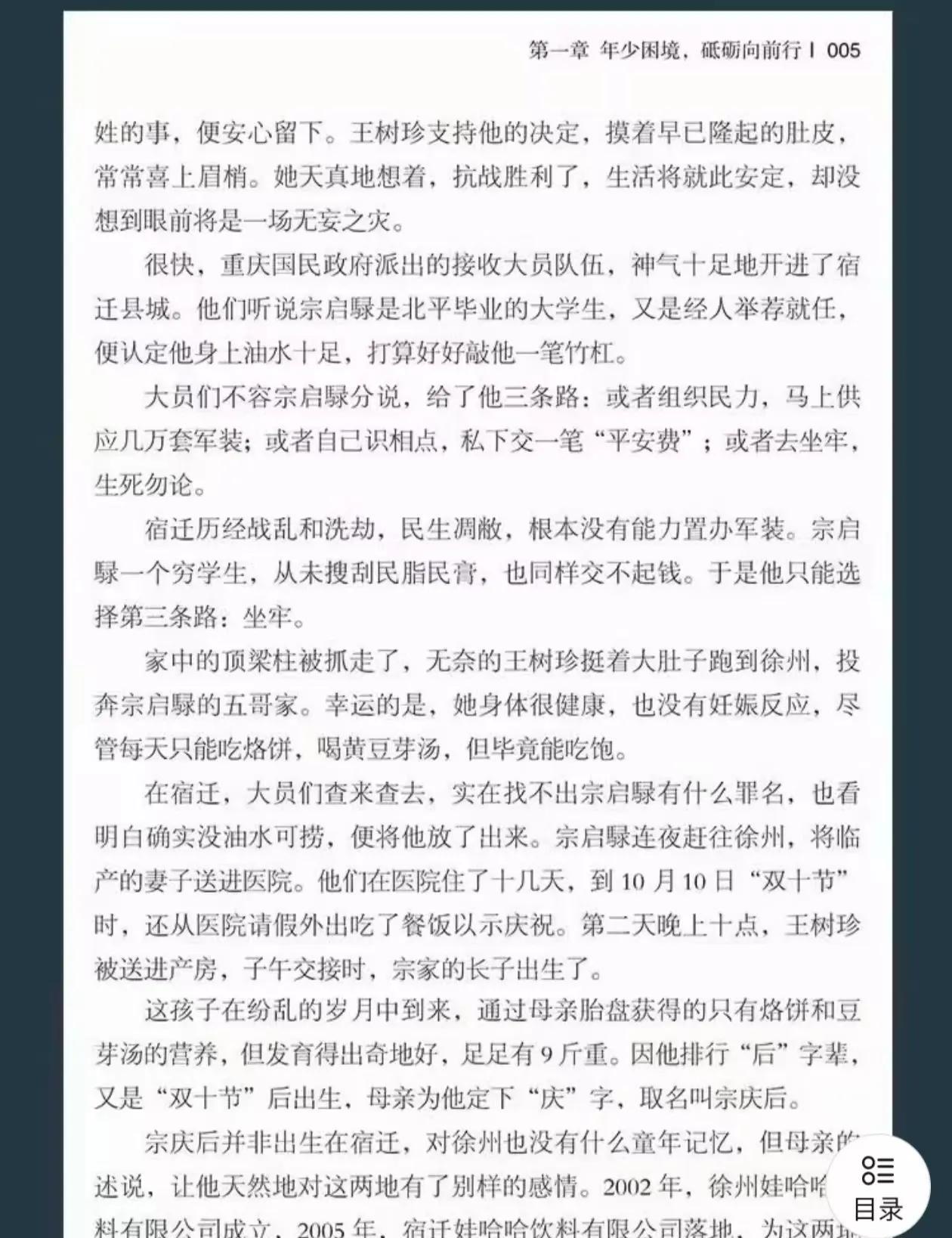 有一说一,宗家祖上相当耀眼,算起来是北宋名将宗泽的后裔。宗庆后自称是宋代名将宗泽的第32世孙。不管真假,他们家反正是信了。 祖上是抗金的民族英雄,高祖父是杭州绿营千总,曾祖父是清军重庆步军统领,祖父和父亲是汪伪...... 不客气的说,这一家人全都病得不轻,老老实实地当一个优秀的商人不好吗,你就是纳一百个妾也没有关系。为啥要立人设,捞偏门,欺世盗名呢?