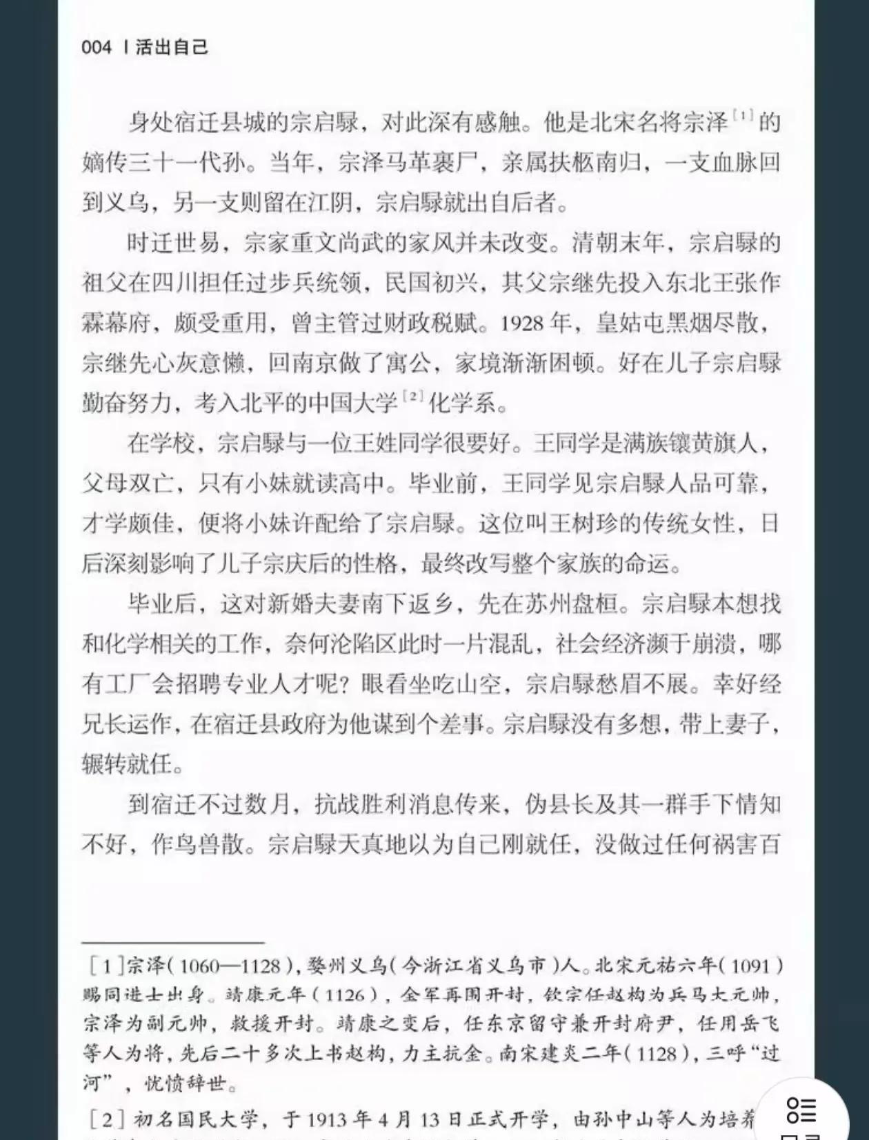 有一说一,宗家祖上相当耀眼,算起来是北宋名将宗泽的后裔。宗庆后自称是宋代名将宗泽