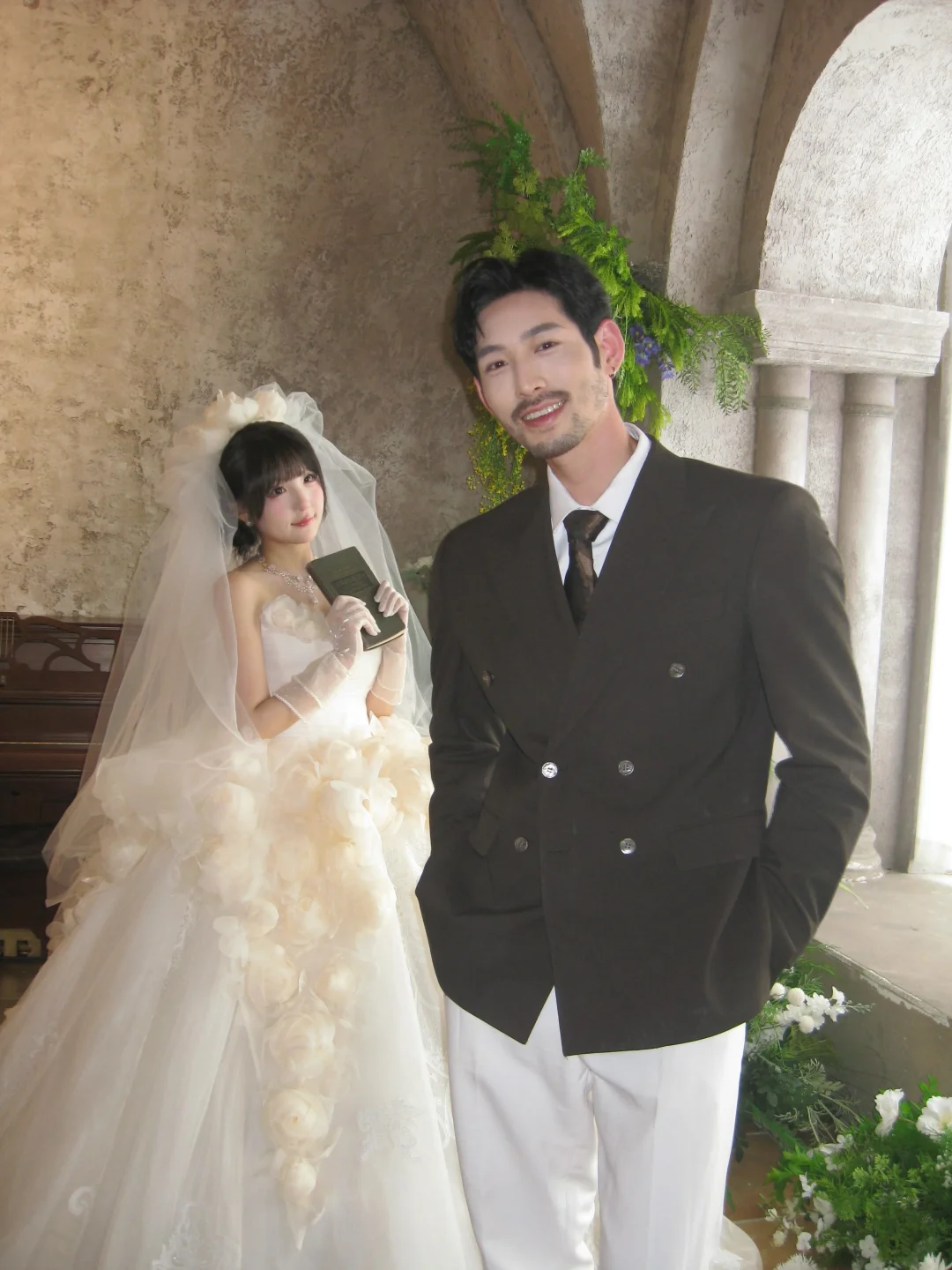 去拍婚纱照啦!发一下ccd拍的花絮 好喜欢的一套造型 大胡子也好帅嘿嘿 期待一下成片![哇R]