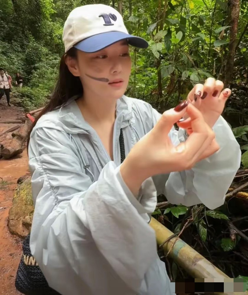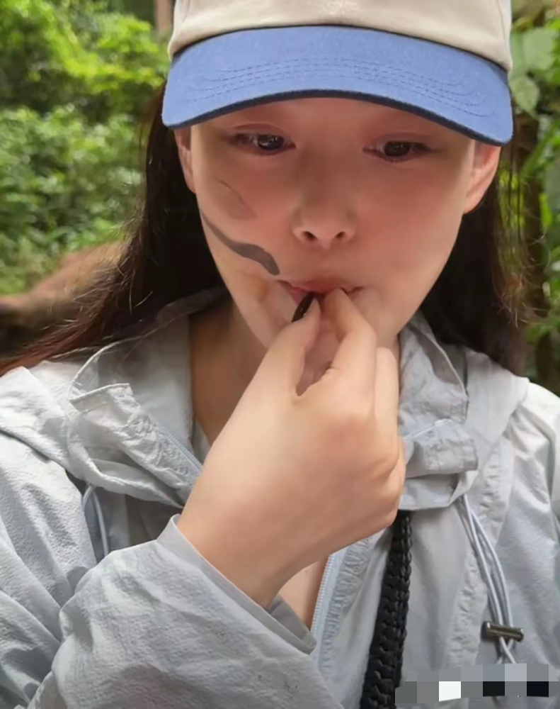 谁能想到?张馨予在户外吃蚂蚁!还把毛毛虫拿手里、让螳螂在袖子上爬……