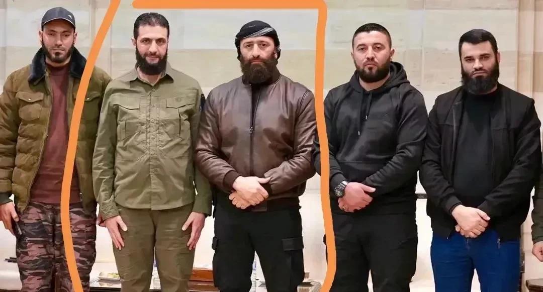 看看这5个人,走在大街上都得让人害怕,个个面相凶悍,杀气腾腾。 跟朱拉尼合影的人,没有一个露出笑容,每个人都一脸不服气,好像都很生气的样子。 只有朱拉尼左边的那个人看着还有点儿弱弱的,看上去有点老实。但这个人最厉害,他就是朱拉尼从巴格达迪那里带来的指挥官。人不可貌相。 巴格达迪是什么人,不用介绍了。 朱拉尼右边就是那个传说中的奥达大帅。 巴沙尔粉丝今年1月份都说奥达大帅要跟朱拉尼争天下,可是这半年他安安静静的像巴沙尔一样,作个沉默的小伙伴,像是从人间蒸发一样。 奥达大帅很老,他的眉毛眼睛鼻子跟朱拉尼很像,比朱拉尼的父亲更像朱拉尼的父亲。 朱拉尼的体型有问题,衬衣里面像塞了个炸弹一样鼓起来。有人还夸朱拉尼是个帅小伙,帅小伙能长成这体型?