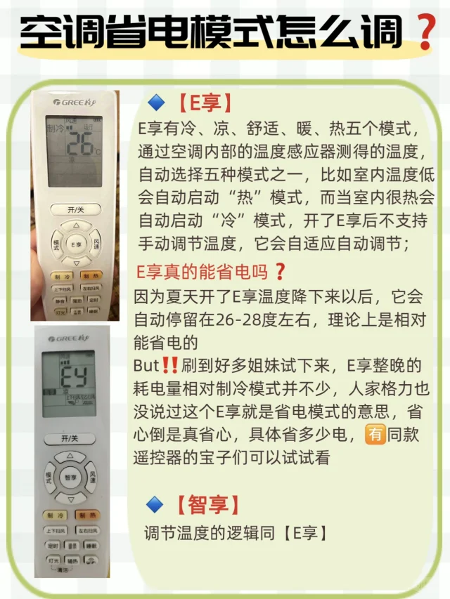 因为夏天开了E享温度降下来以后,它会自动停留在26-28度左右,理论上是相对能省电的
