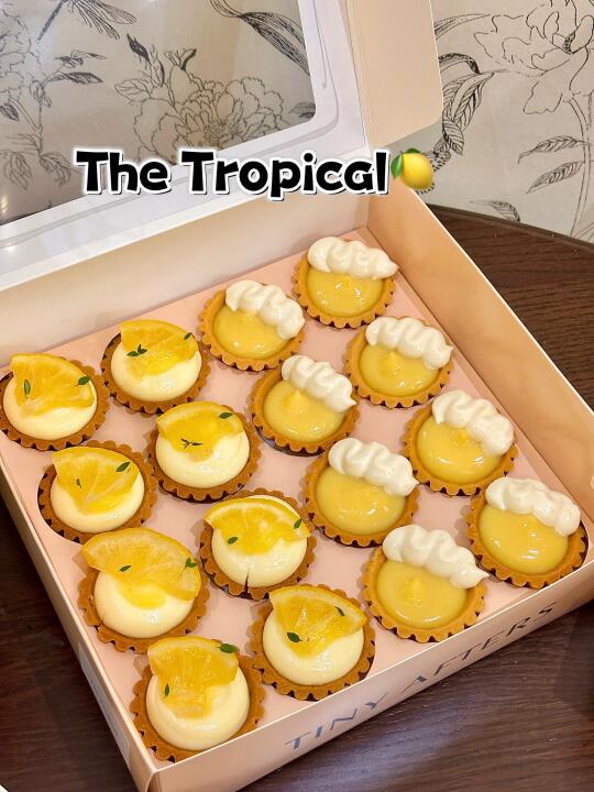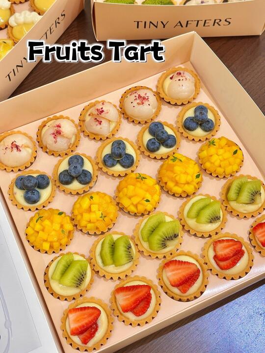 Cute到舍不得吃🥹 ✅ 我点了: 1)Fruits Tart 💰80 must点这个... 水果厚新鲜!层次感丰富😍 2)Tea Par-tea 💰60 茶茶系列super nice 刚刚好不甜腻😋 3)The Tropical 💰62 大爱这个系列 , 酸酸的hinnn开胃清爽😙 塔饼shooo crispy 🤩 蓷给last min想找甜品for派对/送人的集美们!! 🍊tiny afters