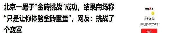 “玩不起了!”北京商场举办“单手抓金”的活动,不料,被一男子成功抓起一根25斤重的金条。男子正准备拿走,却被商场阻拦:“这不是送给你的,是让你体验一下重量。”男子被气笑,说商场玩不起,法院这么判了! 几年前国内很多商场配合金店为了吸引顾客都搞了类似“单手爪金”的活动,也就商场设立一个只能伸入一只手的小洞,里面存放着一根数十斤的金条。如果有顾客能够单手拿起来,那么就可以带走。 不过大多数人都拿都拿不起来,更别说拿出来了。可是俗话说得好,“常在河边走,哪有不湿鞋。” 2021年,北京一个小伙和女友在逛商场的时候,也遇到了这个活动,小伙想着试一下,没有想到真的将金条给拿出来了。当场群众一片起哄的,工作人员神色尴尬。男子心想这不就飞黄腾达了?25斤按照当时的物价不得值个500万? 正当小伙陷入以后美好生活的畅想里时,工作人员一句话让他的心沉入海底。工作人员说,商场从来没有保证过,顾客拿出来之后就可以带走。这个金条只是为了让顾客体验一下25斤的金条到底有多重。 男子顿时就气笑了,按照工作人员这么来说的话,他们确实没有亲口承认能够直接带走,只是用了“挑战金条,非你莫属”等,极具诱惑力和误导性的词汇。男子觉得商场这不就是玩不起,男子的女伴在一旁劝说赶紧走吧,动脑子想一想商场也不会白送的。 可是男子十分不服,因为大多数人都是拿不出来的,自己好不容易拿出来了,为什么不能争取。这不是2克金条,而是25斤! 可商场死咬着牙说只是体验用的,男子气不过后来找来记者,向相关部门投诉了商场。商场最终也因为虚假宣传被罚,可是男子依旧没有资格带走金条。那么男子如果通过法律途径,是否有资格领取金条呢?毕竟这是商场设立的规则。 事实上,几年前类似的案例可是真不少。2022年,山东男子也单手拿起了25斤的金条,可金店以男子拿出来的时候没有将金砖平放,而是侧举触犯了规则,所以剥夺了领取的权利。 能看出来,单手抓金就是一个充满虚假的活动,这颇有一种“最终解释权归商家所有”,即便顾客按照要求,商家也会因为各种原因剥夺顾客的领取权利。 天津男子实在气不过,最后还上节目和商场打起了官司,不过男子依旧没有拿到金条。 因为法院认为男子只通过“挑战金条,非你莫属”这一个宣传语,就确定在挑战成功之后会赠与男子证据不充分。双方之间没有纸质和口头约定,商场也没有张贴类似明确赠与的告示,所以男子没有办法要求商场给付金条。 不过这种骗局已经被顾客悉知,商场也搅乱了市场平衡,违反了相关规定。最后“单手抓金”的活动也就一夜之间消失在市面上了。对此,你怎么看呢?欢迎在下方评论~
