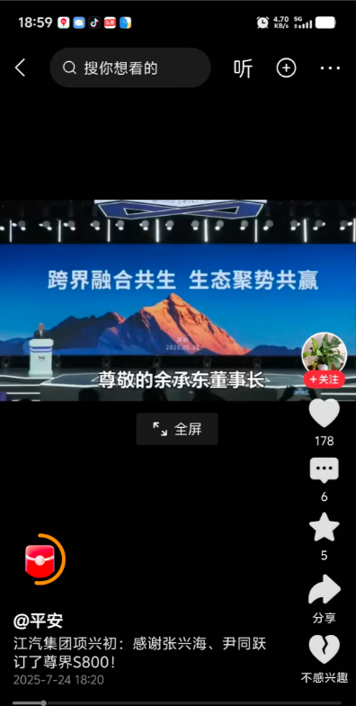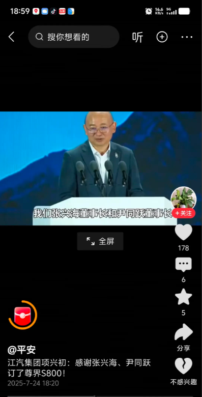 余承东什么时候成董事长了?江汽集团董事长致词称他为董事长?顺便感谢了尹同妖,和张兴海买了S800,两个民企老板买国企的车?是觉得自家车不行?余不是说最好的车吗?现在又买别的车企的车?