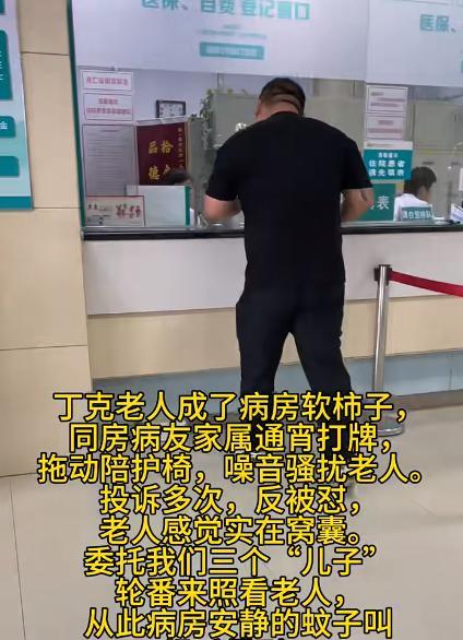 钱比儿子管用!7月24日,辽宁,一丁克老人成了病房软柿子,谁都能捏两把,同房病友家属多次噪音骚扰老人,投诉多次反被怼,老人实在觉得窝囊,花钱委托三个“儿子”,轮番来病房照看,从此病房再无人敢惹! 总有人担心,不生孩子年纪大了住养老院会被欺负,果不其然,大家都是看人下菜碟,老人没有这三个“儿子”的时候,病友家属当她不存在,我行我素,一点都不顾及老人需要休息。 直到老人花钱找来三个大汉当儿子,同房病友家属立马变乖,说什么都愿意配合,估计也是怕惹怒这三个“儿子”! 网友看到纷纷表示:给个联系方式,我老了就找你们帮忙,建议把业务开到各地。 可见钱的重要性,无论是住素质更高条件更好的疗养院,还是花钱雇这些人撑气势,都需要大量的钱。钱虽然不是万能的,但没钱也是万万不能! (每天更新您关心的事,欢迎点赞关注,转发给朋友一起探讨!) 大家看好这种模式吗?